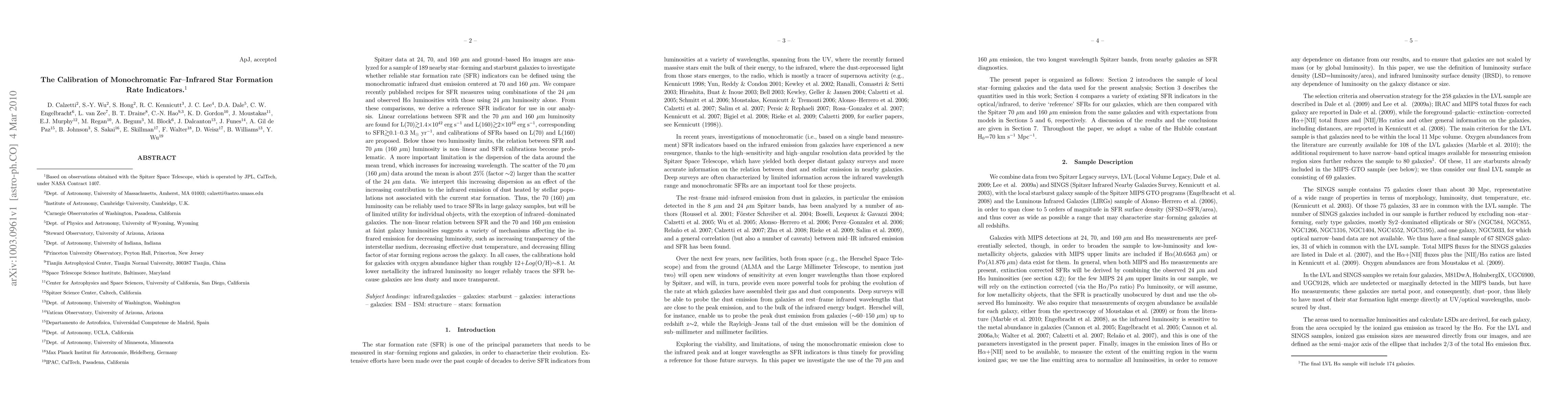 This study calibrates star formation rate (SFR) indicators using monochromatic far-infrared emissions at 70 and 160 microns for nearby star-forming galaxies. It finds linear correlations for SFRs above 0.1-0.3 M_sun/yr, but non-linear relations at lower luminosities, indicating the influence of non-star-forming dust and varying interstellar medium properties.