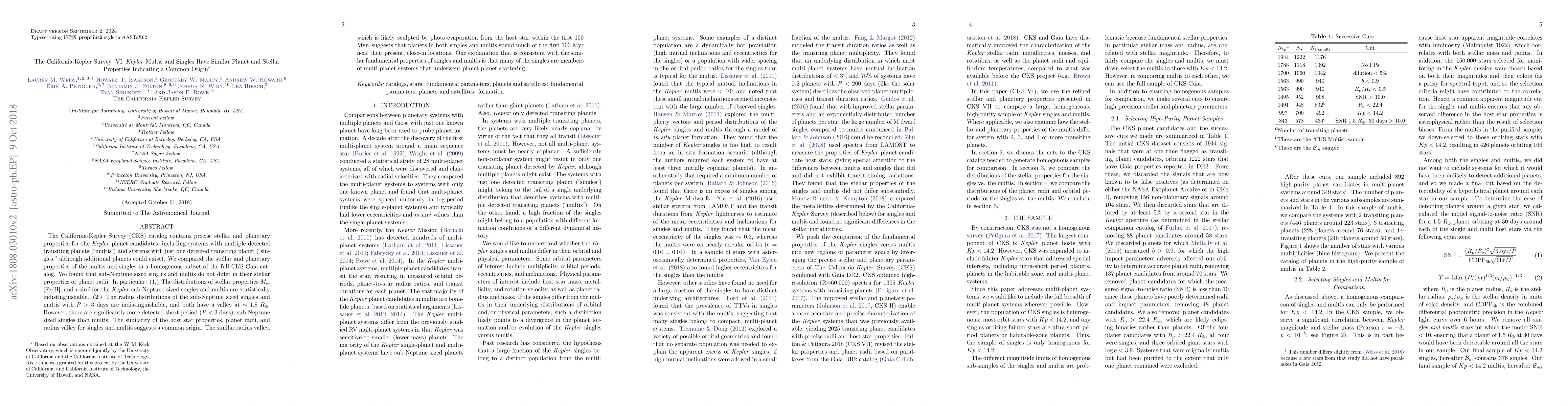 The California-Kepler Survey reveals that Kepler multi-planet and single-planet systems share similar stellar and planetary properties, suggesting a common origin. The study found no significant differences in stellar properties or planet radii between sub-Neptune sized systems, indicating a likely shared evolutionary history.