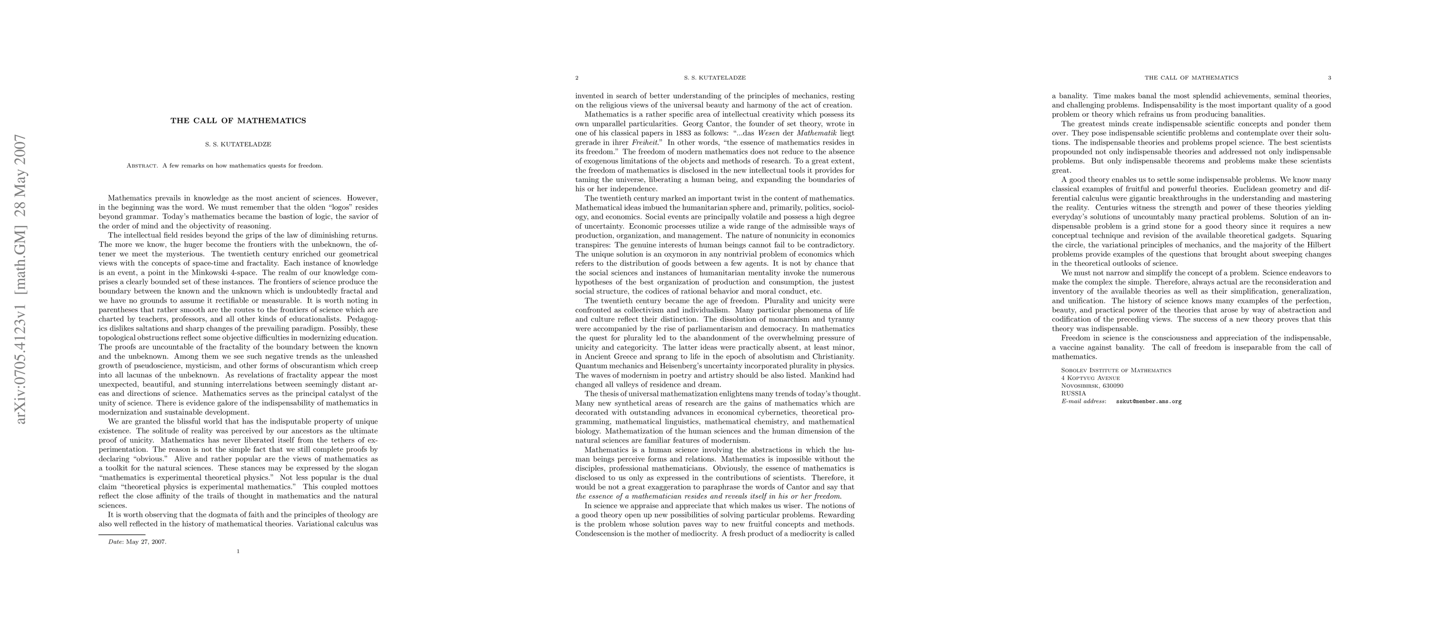 A few remarks on how mathematics quests for freedom.