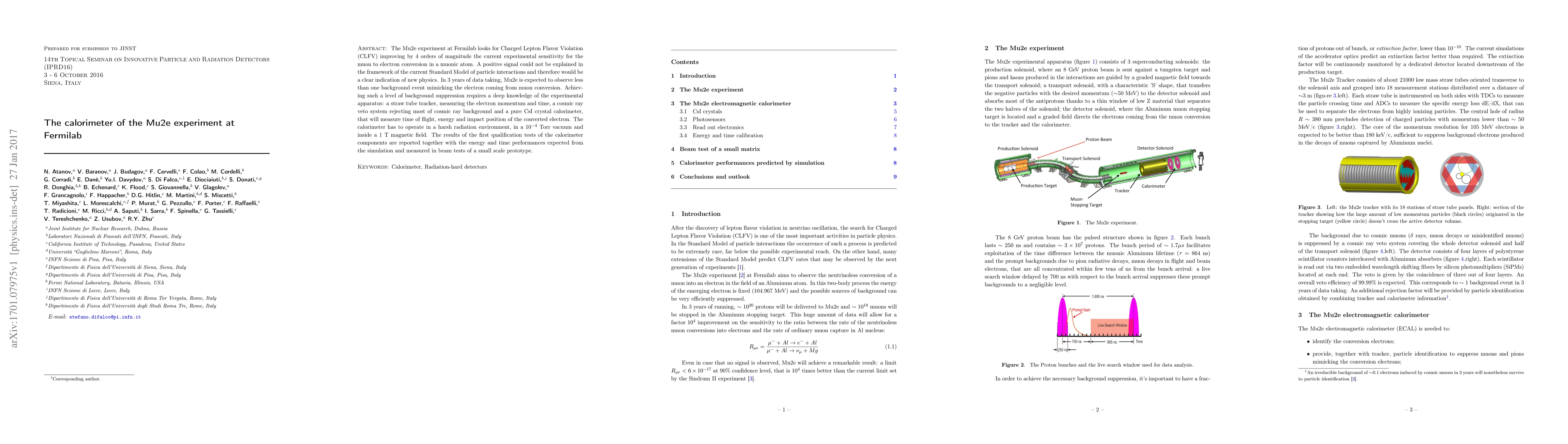 The Mu2e experiment aims to detect Charged Lepton Flavor Violation by observing muon to electron conversion with unprecedented sensitivity. The calorimeter, a key component, must operate in extreme conditions and has undergone qualification tests to ensure it can measure electron energy, time of flight, and position with minimal background interference.