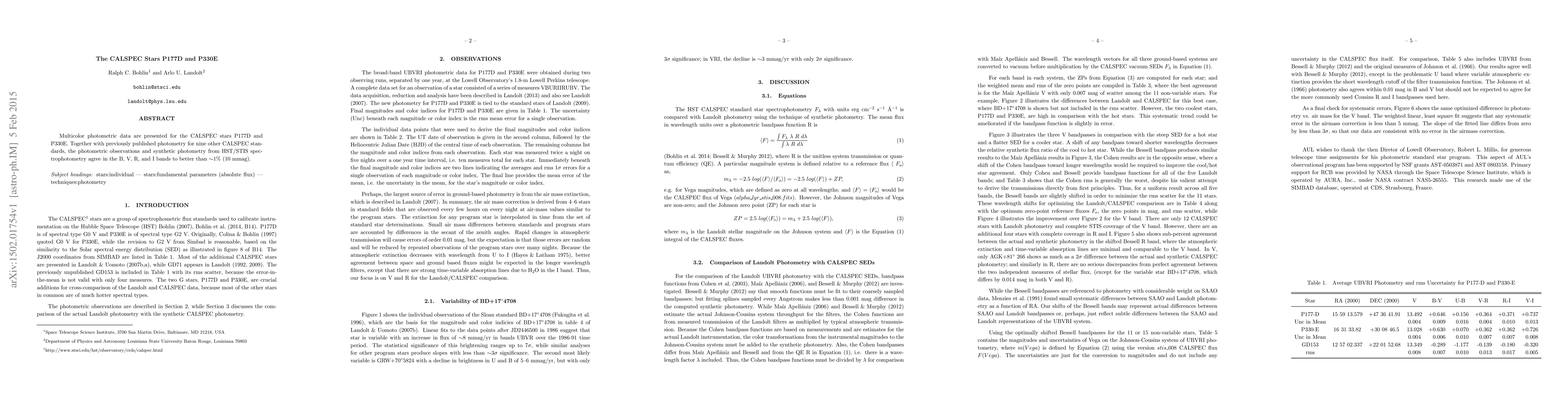 Summary: The paper presents multicolor photometric data for CALSPEC stars P177D and P330E, showing that these observations align closely with previously published data and synthetic photometry from HST/STIS spectrophotometry, with agreement within 1% across B, V, R, and I bands.
