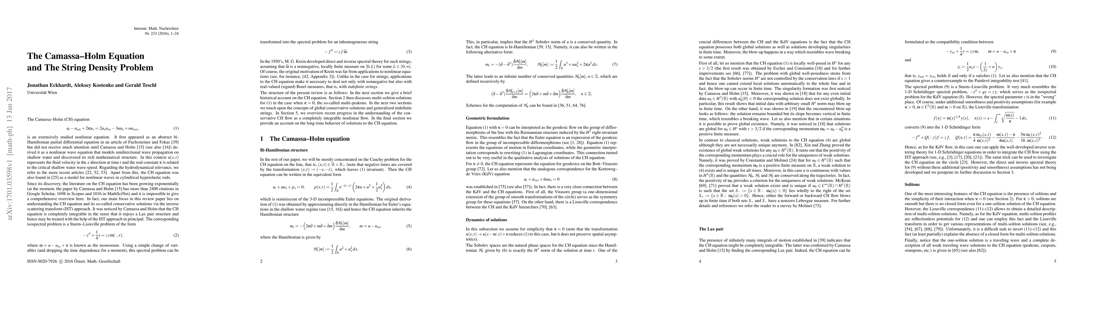In this paper we review the recent progress in the (indefinite) string density problem and its applications to the Camassa--Holm equation.