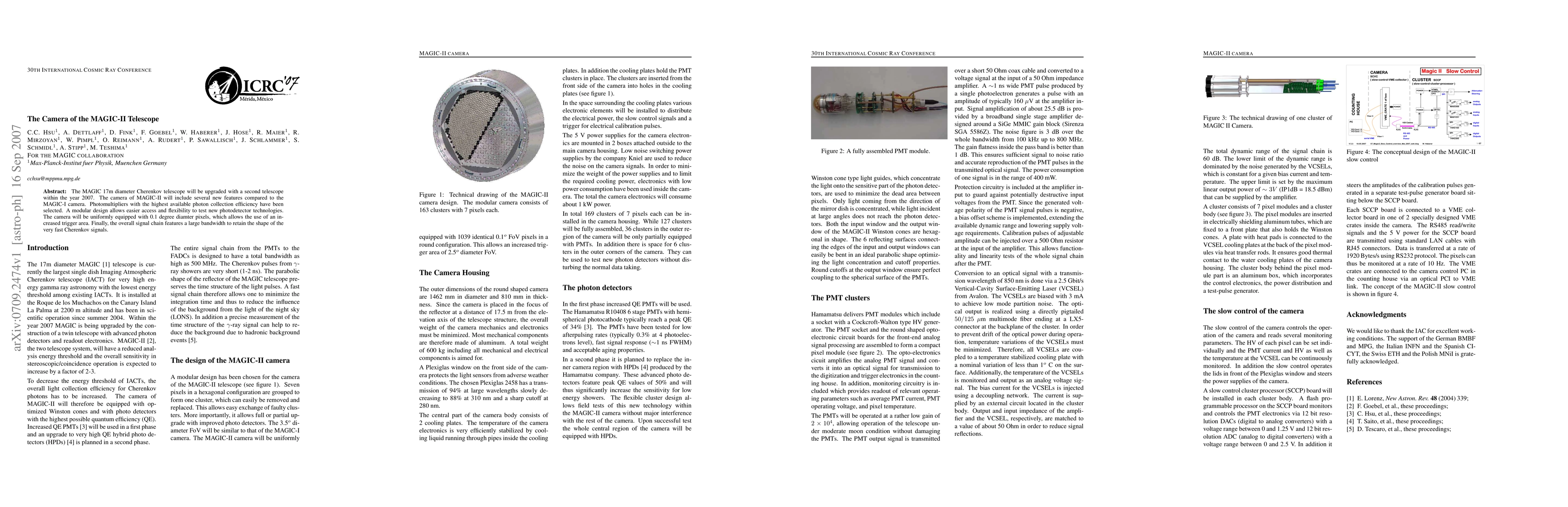 The MAGIC-II telescope will feature an upgraded camera with high-efficiency photomultipliers, modular design for testing new technologies, and uniformly equipped 0.1-degree diameter pixels for an expanded trigger area, all with a high-bandwidth signal chain to capture fast Cherenkov signals.