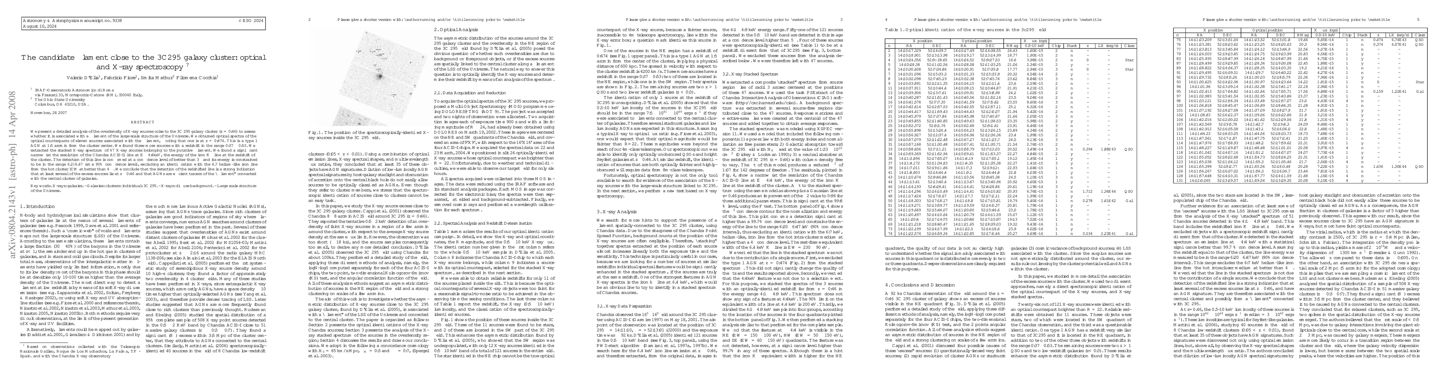 We present a detailed analysis of the overdensity of X-ray sources colse to the 3C 295 galaxy cluster (z=0.46) to assess whether it is associated with a filament of the large-scale structure of the Universe. We obtained optical spectra of the optical counterparts of eleven sources associated with the filament, finding that one is at z=0.474. This is a type 1 AGN at 1.5 arcmin from the cluster center. We found three more sources with a redshift in the range 0.37 - 0.53. We extracted the stacked X-ray spectrum of 47 X-ray sources belonging to the putative filament. We found a significant narrow (at the resolution of the Chandra ACIS-I) line at E ~ 4.4 keV, the energy of the iron Kalpha line at the redshift of the cluster. The detection of this line is confirmed at a confidence level of better than 3sigma and its energy is constrained to be in the range 6.2--6.47 (at a 90% confidence level), excluding an identification with the 6.7 helium-like iron line from the hot cluster ICM at better than 4 sigma. We conclude that the detection of the redshifted line is a strong indication that at least several of the excess sources lie at z ~ 0.46 and that AGNs are efficient tracers of the ``filament'' connected with the central cluster of galaxies.