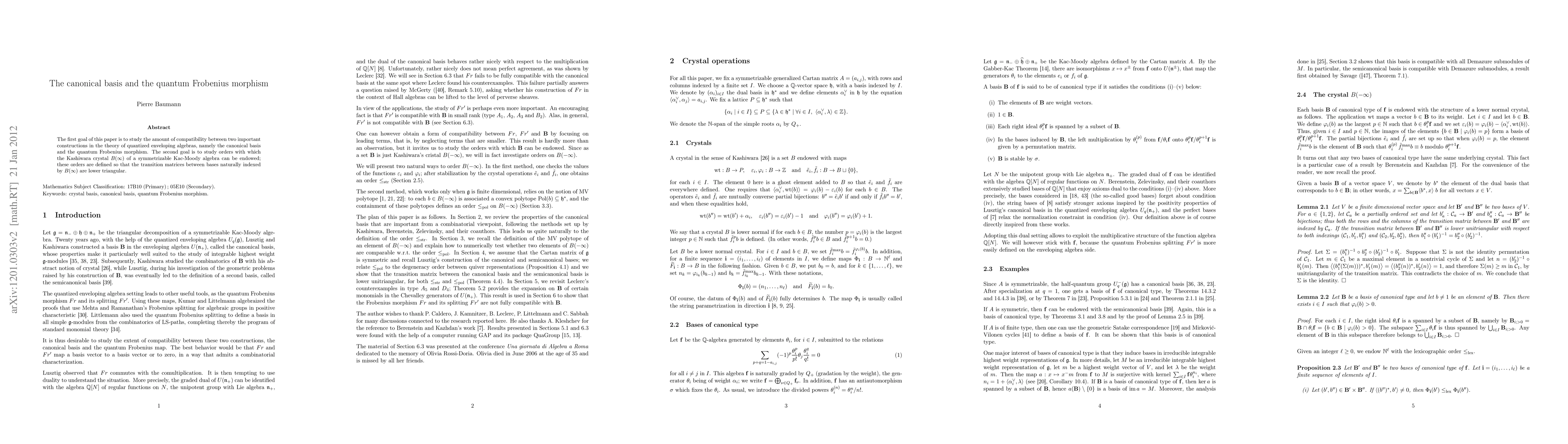 The first goal of this paper is to study the amount of compatibility between two important constructions in the theory of quantized enveloping algebras, namely the canonical basis and the quantum Frobenius morphism. The second goal is to study orders with which the Kashiwara crystal B(infinity) of a symmetrizable Kac-Moody algebra can be endowed; these orders are defined so that the transition matrices between bases naturally indexed by B(infinity) are lower triangular.