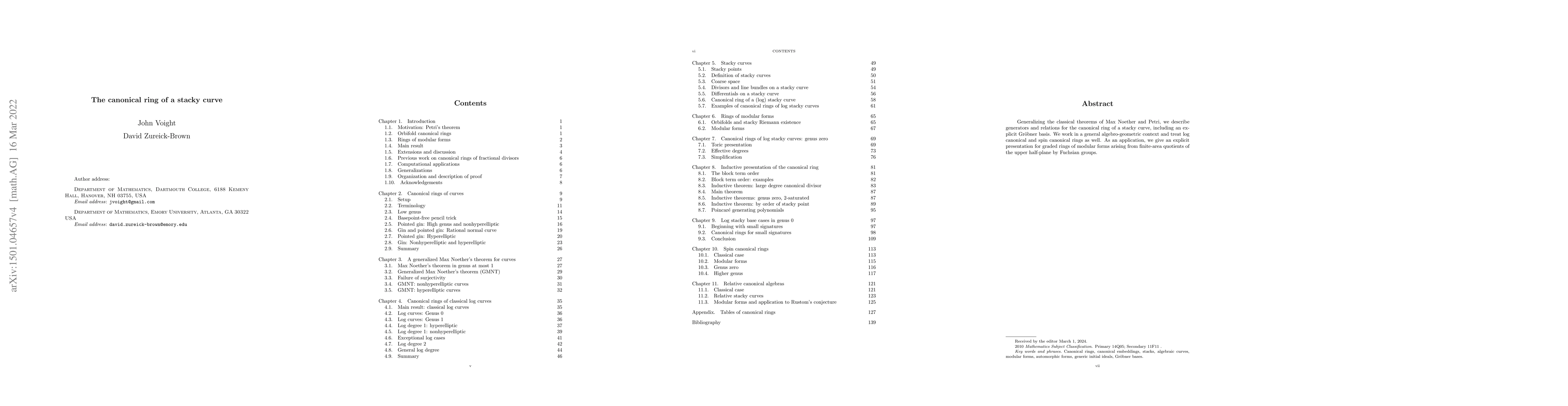 This paper generalizes classical theorems to find generators and relations for the canonical ring of a stacky curve, providing an explicit Gröbner basis. It also applies these results to present graded rings of modular forms from finite-area quotients of the upper half-plane by Fuchsian groups.