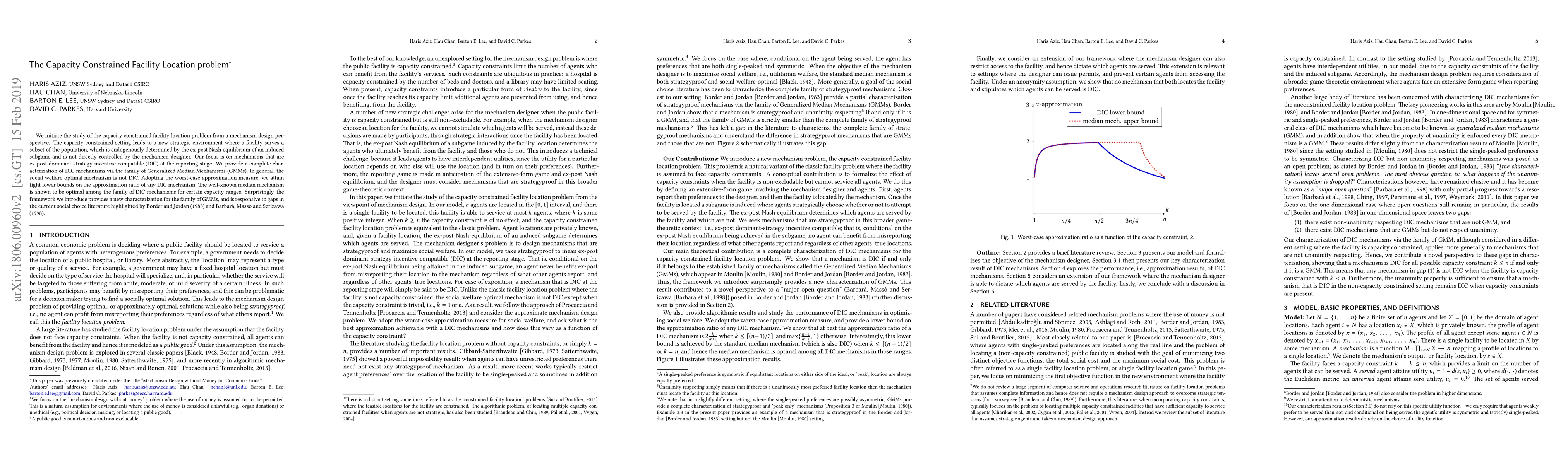 This paper studies a facility location problem with capacity constraints from a mechanism design perspective, showing that social welfare optimal mechanisms may not be dominant-strategy incentive compatible, but provides tight bounds on approximation ratios for such mechanisms.