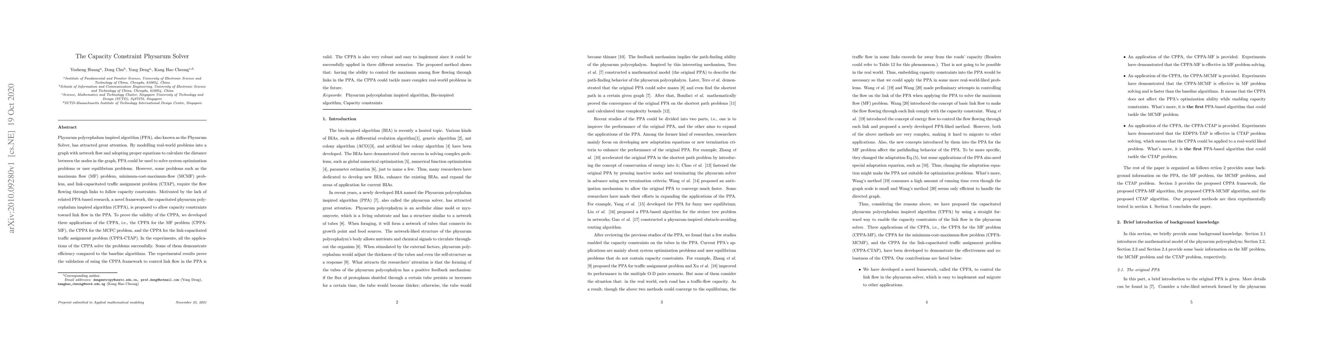 Physarum polycephalum inspired algorithm (PPA), also known as the Physarum Solver, has attracted great attention. By modelling real-world problems into a graph with network flow and adopting proper equations to calculate the distance between the nodes in the graph, PPA could be used to solve system optimization problems or user equilibrium problems. However, some problems such as the maximum flow (MF) problem, minimum-cost-maximum-flow (MCMF) problem, and link-capacitated traffic assignment problem (CTAP), require the flow flowing through links to follow capacity constraints. Motivated by the lack of related PPA-based research, a novel framework, the capacitated physarum polycephalum inspired algorithm (CPPA), is proposed to allow capacity constraints toward link flow in the PPA. To prove the validity of the CPPA, we developed three applications of the CPPA, i.e., the CPPA for the MF problem (CPPA-MF), the CPPA for the MCFC problem, and the CPPA for the link-capacitated traffic assignment problem (CPPA-CTAP). In the experiments, all the applications of the CPPA solve the problems successfully. Some of them demonstrate efficiency compared to the baseline algorithms. The experimental results prove the validation of using the CPPA framework to control link flow in the PPA is valid. The CPPA is also very robust and easy to implement since it could be successfully applied in three different scenarios. The proposed method shows that: having the ability to control the maximum among flow flowing through links in the PPA, the CPPA could tackle more complex real-world problems in the future.