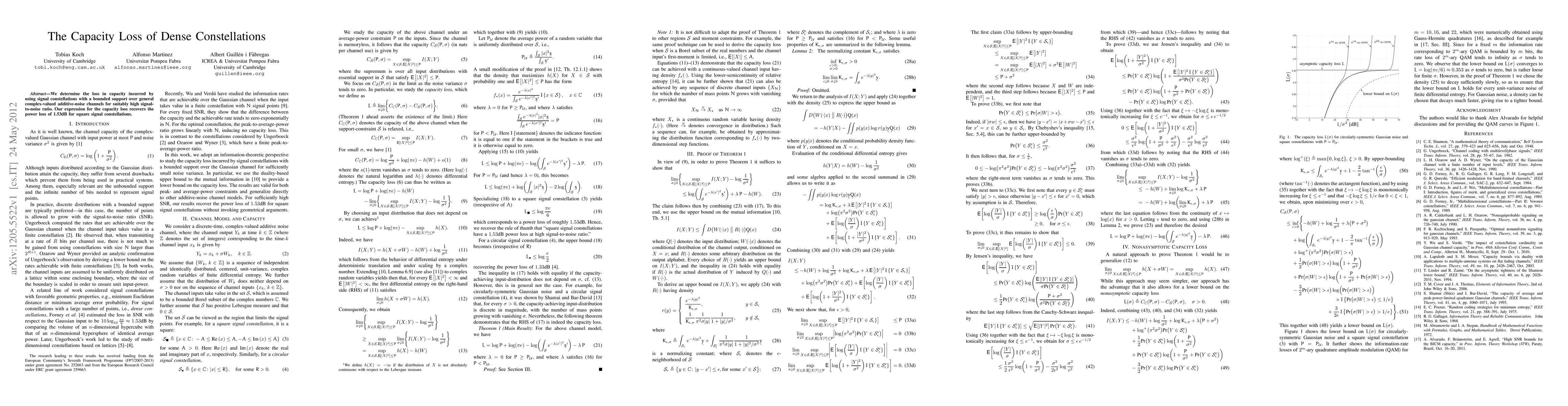 This paper quantifies the capacity loss in dense signal constellations with bounded support over complex-valued additive-noise channels at high signal-to-noise ratios, specifically recovering the 1.53dB power loss for square constellations.