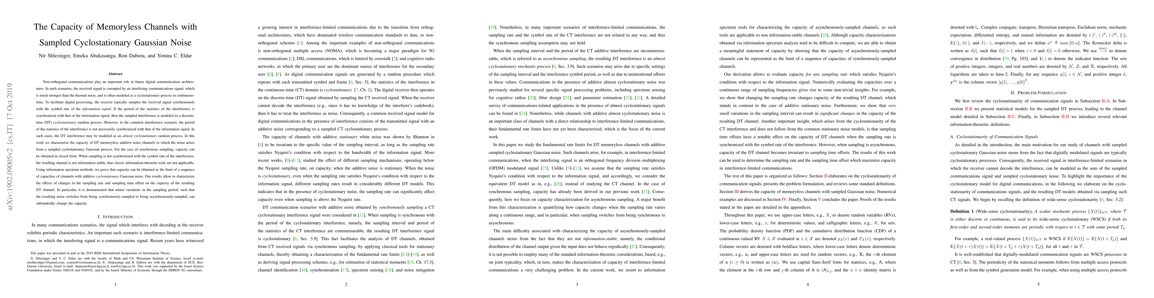 This work is significant for future communication architectures, particularly in non-orthogonal scenarios where interference is cyclostationary, providing insights into the impact of sampling rate and time offset on channel capacity.