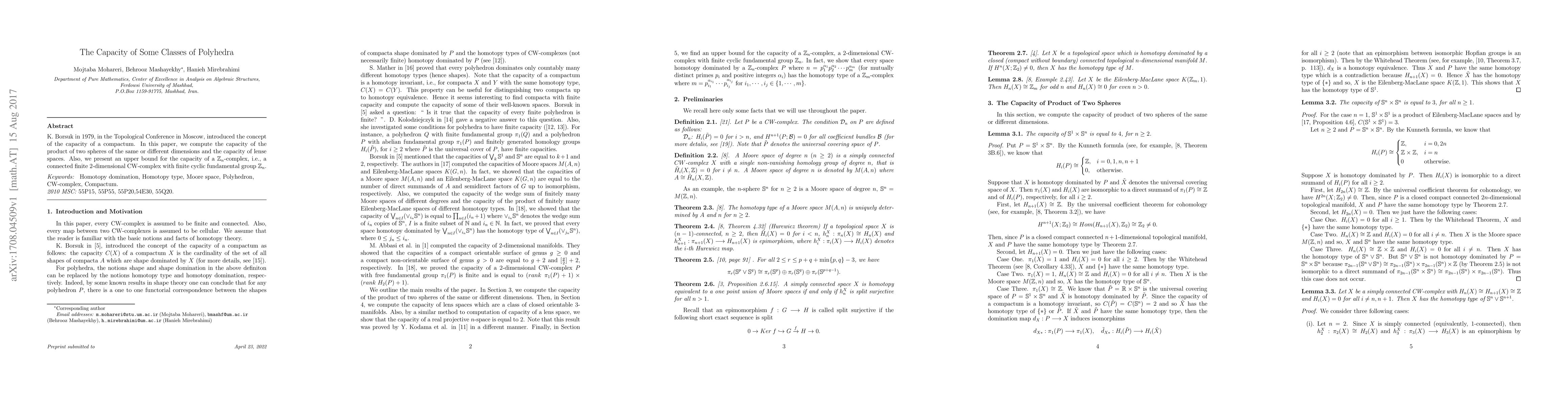 This paper calculates the capacity of specific polyhedra products and lens spaces, providing an upper bound for a Z_n complex.