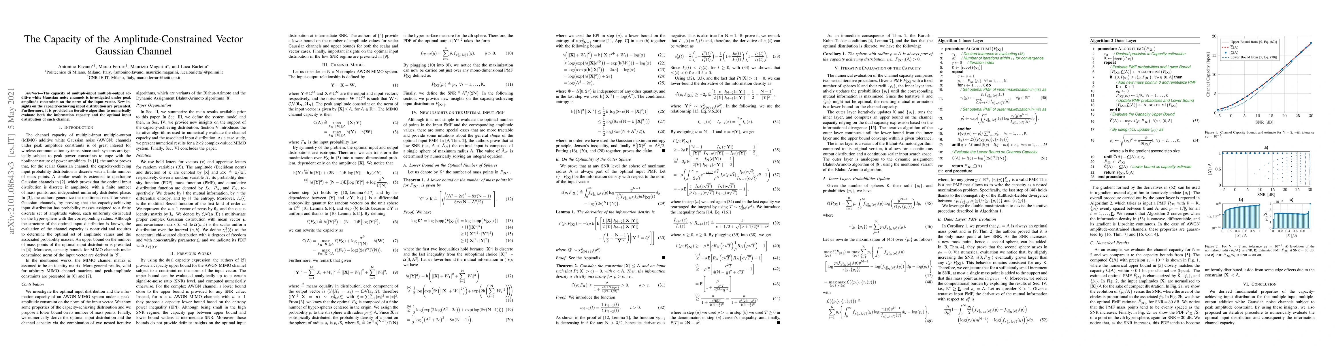 This paper investigates the capacity of multiple-input multiple-output Gaussian channels under peak amplitude constraints, presenting new insights into the capacity-achieving input distribution and an iterative algorithm for evaluating the information capacity and optimal input distribution.