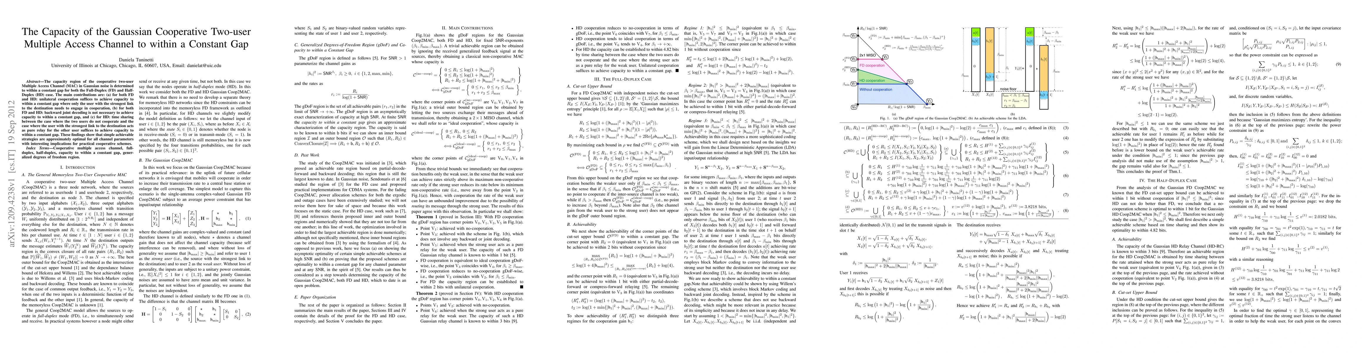 The capacity region of the cooperative two-user Multiple Access Channel (MAC) in Gaussian noise is determined to within a constant gap for both the Full-Duplex (FD) and Half-Duplex (HD) case. The main contributions are: (a) for both FD and HD: unilateral cooperation suffices to achieve capacity to within a constant gap where only the user with the strongest link to the destination needs to engage in cooperation, (b) for both FD and HD: backward joint decoding is not necessary to achieve capacity to within a constant gap, and (c) for HD: time sharing between the case where the two users do not cooperate and the case where the user with the strongest link to the destination acts as pure relay for the other user suffices to achieve capacity to within a constant gap. These findings show that simple achievable strategies are approximately optimal for all channel parameters with interesting implications for practical cooperative schemes.