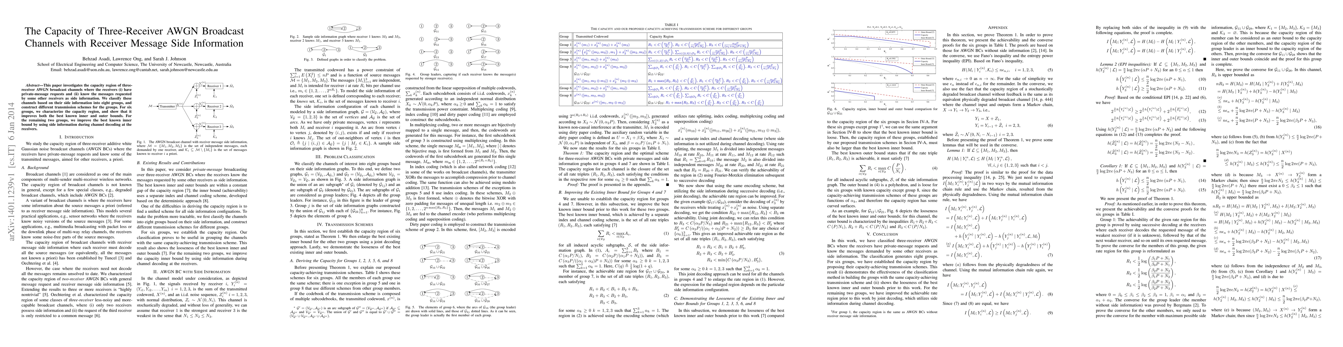 This paper explores the capacity region of three-receiver AWGN broadcast channels with receiver side information, classifying channels into eight groups and devising transmission schemes. For six groups, it characterizes the capacity region, improving known bounds, and for the remaining two, it enhances the inner bound using side information in decoding.