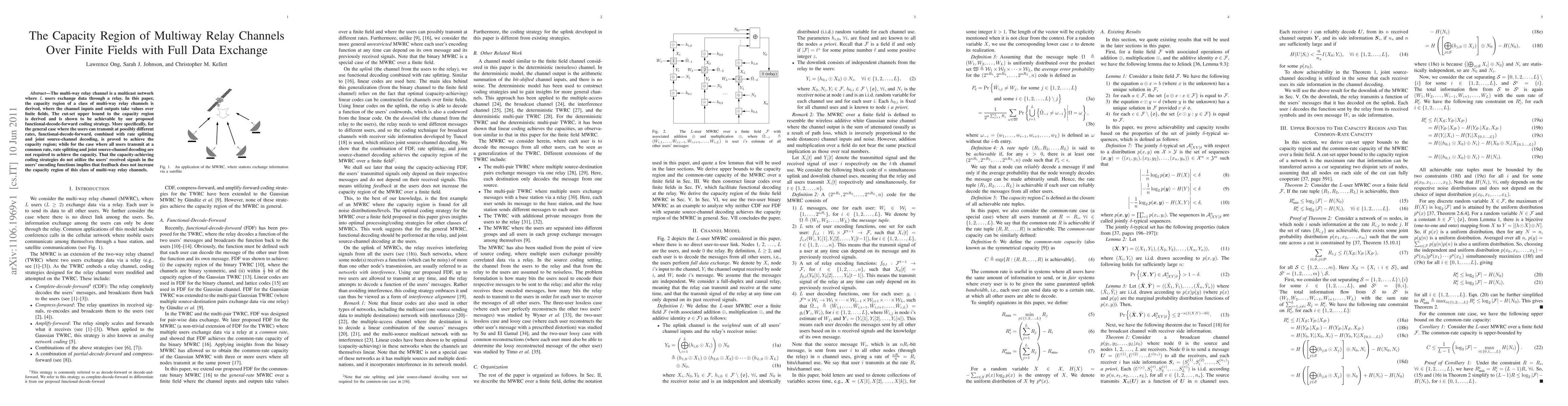 The multi-way relay channel is a multicast network where L users exchange data through a relay. In this paper, the capacity region of a class of multi-way relay channels is derived, where the channel inputs and outputs take values over finite fields. The cut-set upper bound to the capacity region is derived and is shown to be achievable by our proposed functional-decode-forward coding strategy. More specifically, for the general case where the users can transmit at possibly different rates, functional-decode-forward, combined with rate splitting and joint source-channel decoding, is proved to achieve the capacity region; while for the case where all users transmit at a common rate, rate splitting and joint source-channel decoding are not required to achieve the capacity. That the capacity-achieving coding strategies do not utilize the users' received signals in the users' encoding functions implies that feedback does not increase the capacity region of this class of multi-way relay channels.