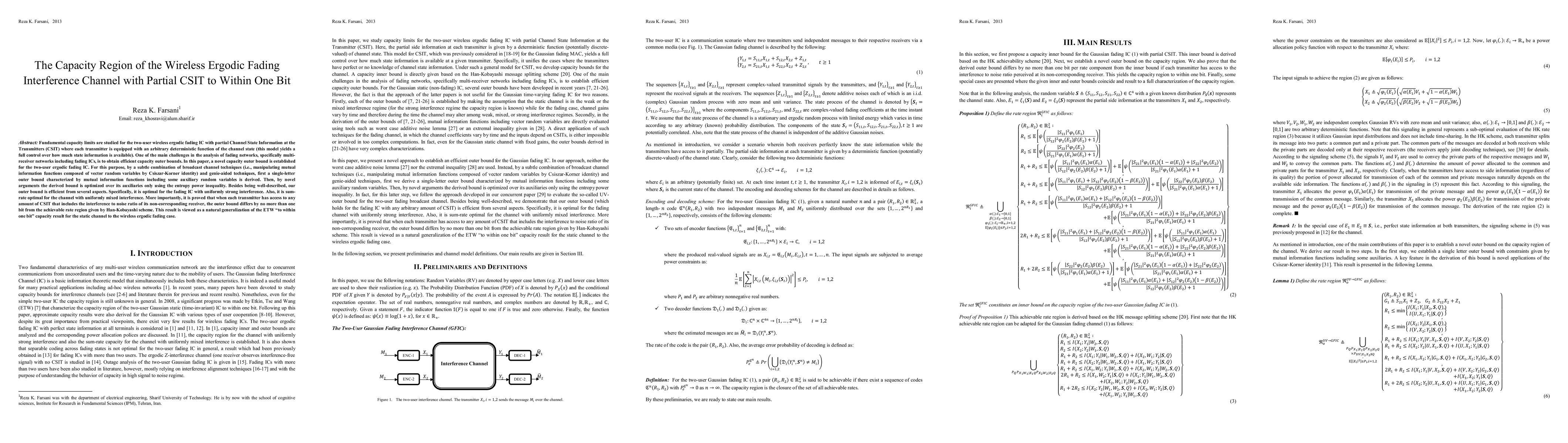 Fundamental capacity limits are studied for the two-user wireless ergodic fading IC with partial Channel State Information at the Transmitters (CSIT) where each transmitter is equipped with an arbitrary deterministic function of the channel state (this model yields a full control over how much state information is available). One of the main challenges in the analysis of fading networks, specifically multi-receiver networks including fading ICs, is to obtain efficient capacity outer bounds. In this paper, a novel capacity outer bound is established for the two-user ergodic fading IC. For this purpose, by a subtle combination of broadcast channel techniques (i.e., manipulating mutual information functions composed of vector random variables by Csiszar-Korner identity) and genie-aided techniques, first a single-letter outer bound characterized by mutual information functions including some auxiliary random variables is derived. Then, by novel arguments the derived bound is optimized over its auxiliaries only using the entropy power inequality. Besides being well-described, our outer bound is efficient from several aspects. Specifically, it is optimal for the fading IC with uniformly strong interference. Also, it is sum-rate optimal for the channel with uniformly mixed interference. More importantly, it is proved that when each transmitter has access to any amount of CSIT that includes the interference to noise ratio of its non-corresponding receiver, the outer bound differs by no more than one bit from the achievable rate region given by Han-Kobayashi scheme. This result is viewed as a natural generalization of the ETW to within one bit capacity result for the static channel to the wireless ergodic fading case.
