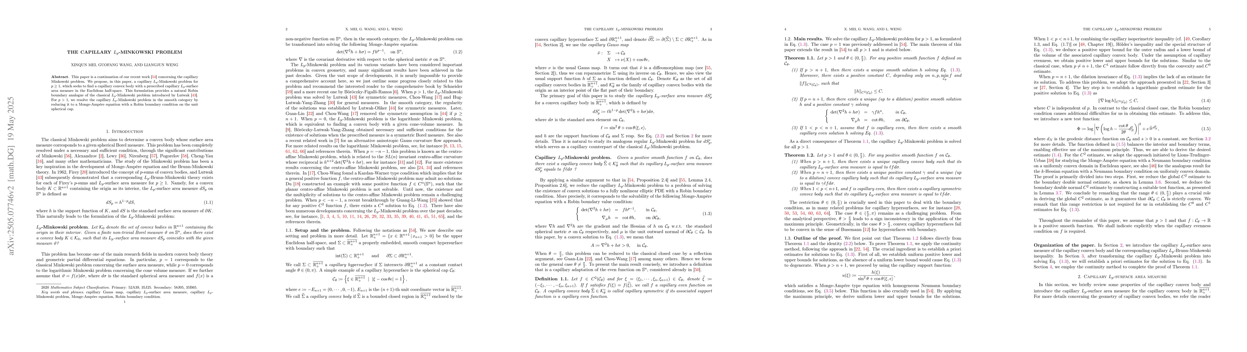 The paper proposes a capillary $L_p$-Minkowski problem for $p \geq 1$, seeking a capillary convex body with a prescribed capillary $L_p$-surface area measure in the Euclidean half-space, reducing it to a Monge-Ampère equation with a Robin boundary condition on the unit spherical cap for $p > 1.$