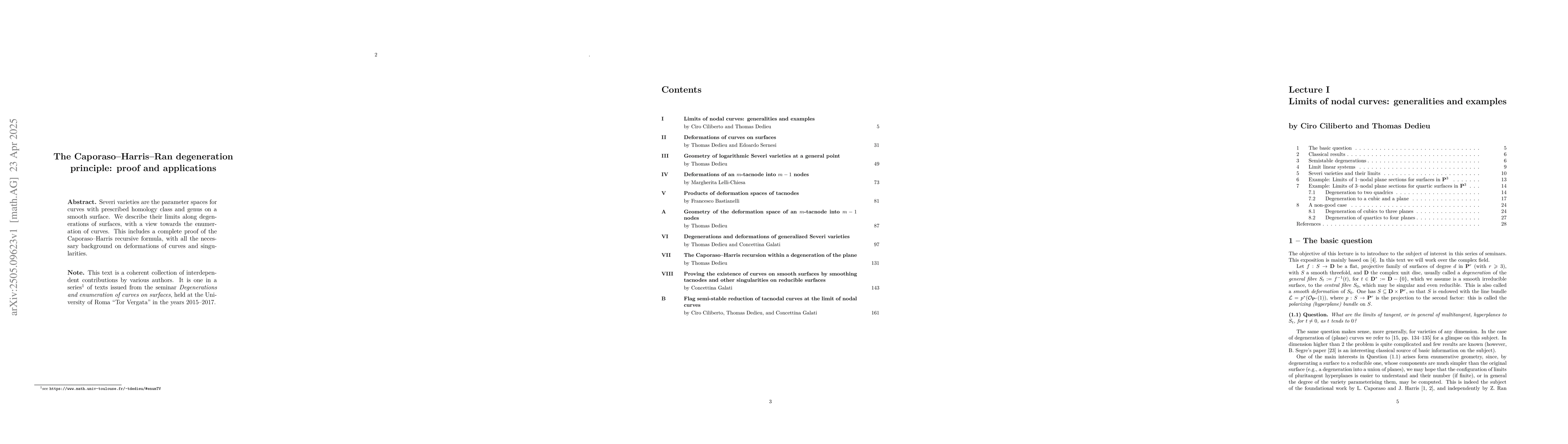 Researchers proved the Caporaso-Harris recursive formula for enumerating curves on smooth surfaces, providing a key framework for understanding Severi varieties and their applications in topology.