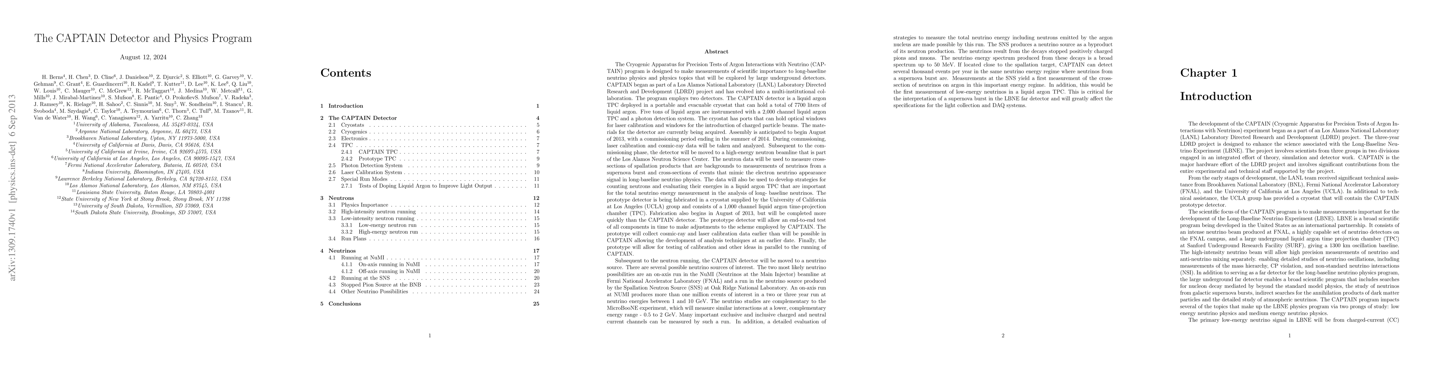 The Cryogenic Apparatus for Precision Tests of Argon Interactions with Neutrino (CAP- TAIN) program is designed to make measurements of scientific importance to long-baseline neutrino physics and physics topics that will be explored by large underground detectors. The CAPTAIN detector is a liquid argon TPC deployed in a portable and evacuable cryostat. Five tons of liquid argon are instrumented with a 2,000 channel liquid argon TPC and a photon detection system. Subsequent to the commissioning phase, the detector will collect data in a high-energy neutron beamline that is part of the Los Alamos Neutron Science Center to measure cross-sections of spallation products that are backgrounds to measurements of neutrinos from a supernova burst, cross-sections of events that mimic the electron neutrino appearance signal in long-baseline neutrino physics and neutron signatures to constrain neutrino energy reconstruction in LBNE's long-baseline program. Subsequent to the neutron running, the CAPTAIN detector will be moved to a neutrino source. Two possibilities are an on-axis run in the NuMI beamline at FNAL and a run in the neutrino source produced by the SNS. An on-axis run at NuMI produces more than one million events of interest in a two or three year run at neutrino energies between 1 and 10 GeV - complementary to the MicroBooNE experiment, which will measure similar interactions at a lower energy range - 0.5 to 2 GeV. At the SNS the neutrinos result from the decays stopped positively charged pions and muons yielding a broad spectrum up to 50 MeV. If located close to the spallation target, CAPTAIN can detect several thousand events per year in the same neutrino energy regime where neutrinos from a supernova burst are. Measurements at the SNS yield a first measurement of the cross- section of neutrinos on argon in this important energy regime.