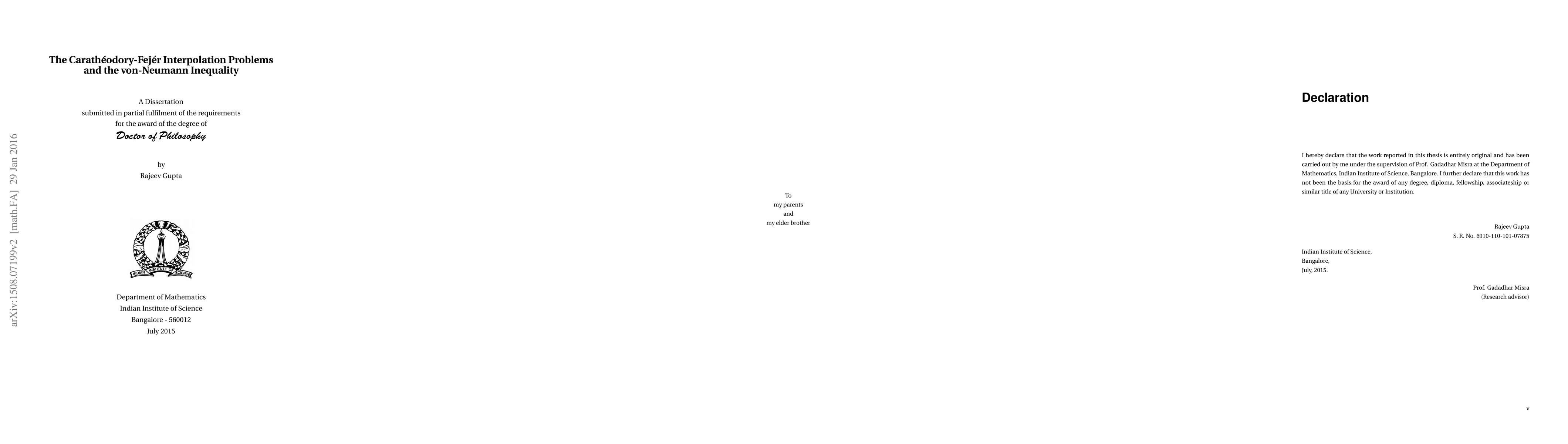 The validity of the von-Neumann inequality for commuting $n$ - tuples of $3\times 3$ matrices remains open for $n\geq 3$. We give a partial answer to this question, which is used to obtain a necessary condition for the Carath\'{e}odory-Fej\'{e}r interpolation problem on the polydisc $\mathbb D^n.$ In the special case of $n=2$ (which follows from Ando's theorem as well), this necessary condition is made explicit. An alternative approach to the Carath\'{e}odory-Fej\'{e}r interpolation problem, in the special case of $n=2,$ adapting a theorem of Kor\'{a}nyi and Puk\'{a}nzsky is given. As a consequence, a class of polynomials are isolated for which a complete solution to the Carath\'{e}odory-Fej\'{e}r interpolation problem is easily obtained. A natural generalization of the Hankel operators on the Hardy space of $H^2(\mathbb T^2)$ then becomes apparent. Many of our results remain valid for any $n\in \mathbb N,$ however, the computations are somewhat cumbersome for $n>2$ and are omitted. The inequality $\lim_{n\to \infty}C_2(n)\leq 2 K^\mathbb C_G$, where $K_G^\mathbb C$ is the complex Grothendieck constant and \[C_2(n)=\sup\big\{\|p(\boldsymbol T)\|:\|p\|_{\mathbb D^n,\infty}\leq 1, \|\boldsymbol T\|_{\infty} \leq 1 \big\}\] is due to Varopoulos. Here the supremum is taken over all complex polynomials $p$ in $n$ variables of degree at most $2$ and commuting $n$ - tuples $\boldsymbol T:=(T_1,\ldots,T_n)$ of contractions. We show that \[\lim_{n\to \infty}C_2(n)\leq \frac{3\sqrt{3}}{4} K^\mathbb C_G\] obtaining a slight improvement in the inequality of Varopoulos. We show that the normed linear space $\ell^1(n),$ $n>1,$ has no isometric embedding into $k\times k$ complex matrices for any $k\in \mathbb N$ and discuss several infinite dimensional operator space structures on it.