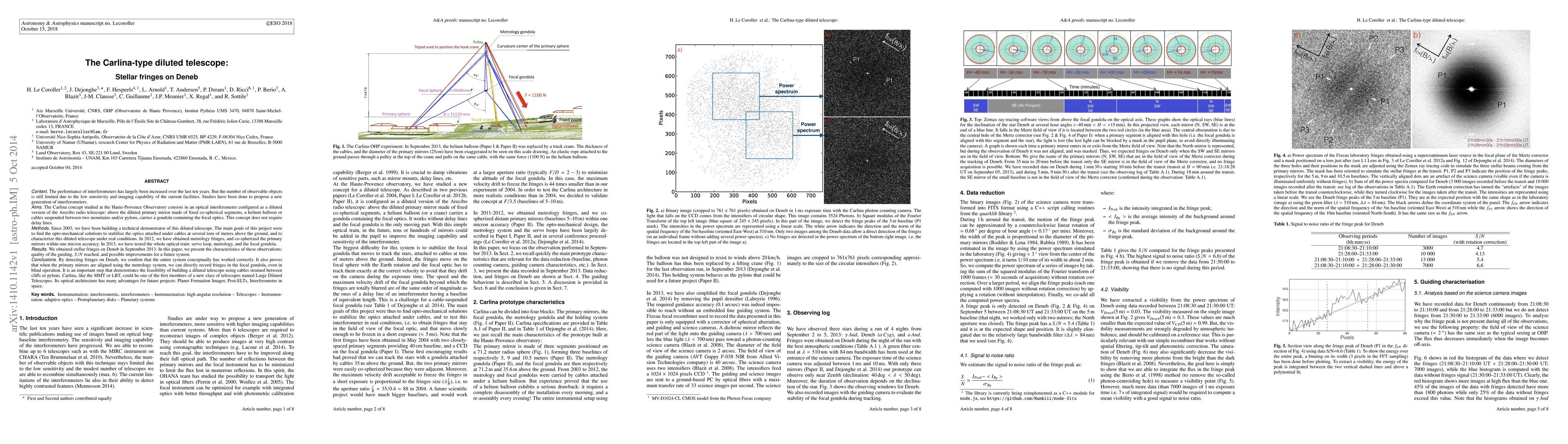 Context. The performance of interferometers has largely been increased over the last ten years. But the number of observable objects is still limited due to the low sensitivity and imaging capability of the current facilities. Studies have been done to propose a new generation of interferometers. Aims. The Carlina concept studied at the Haute-Provence Observatory consists in an optical interferometer configured as a diluted version of the Arecibo radio telescope: above the diluted primary mirror made of fixed co-spherical segments, a helium balloon or cables suspended between two mountains and/or pylons, carries a gondola containing the focal optics. This concept does not require delay lines. Methods. Since 2003, we have been building a technical demonstrator of this diluted telescope. The main goals of this project were to find the opto-mechanical solutions to stabilize the optics attached under cables at several tens of meters above the ground, and to characterize this diluted telescope under real conditions. In 2012, we have obtained metrology fringes, and co-spherized the primary mirrors within one micron accuracy. In 2013, we have tested the whole optical train: servo loop, metrology, and the focal gondola. Results. We obtained stellar fringes on Deneb in September 2013. In this paper, we present the characteristics of these observations: quality of the guiding, S /N reached, and possible improvements for a future system. Conclusions. It is an important step that demonstrates the feasibility of building a diluted telescope using cables strained between cliffs or pylons. Carlina, like the MMT or LBT, could be one of the first members of a new class of telescopes named Large Diluted Telescopes. Its optical architecture has many advantages for future projects: Planet Formation Imager, Post-ELTs, Interferometer in space.