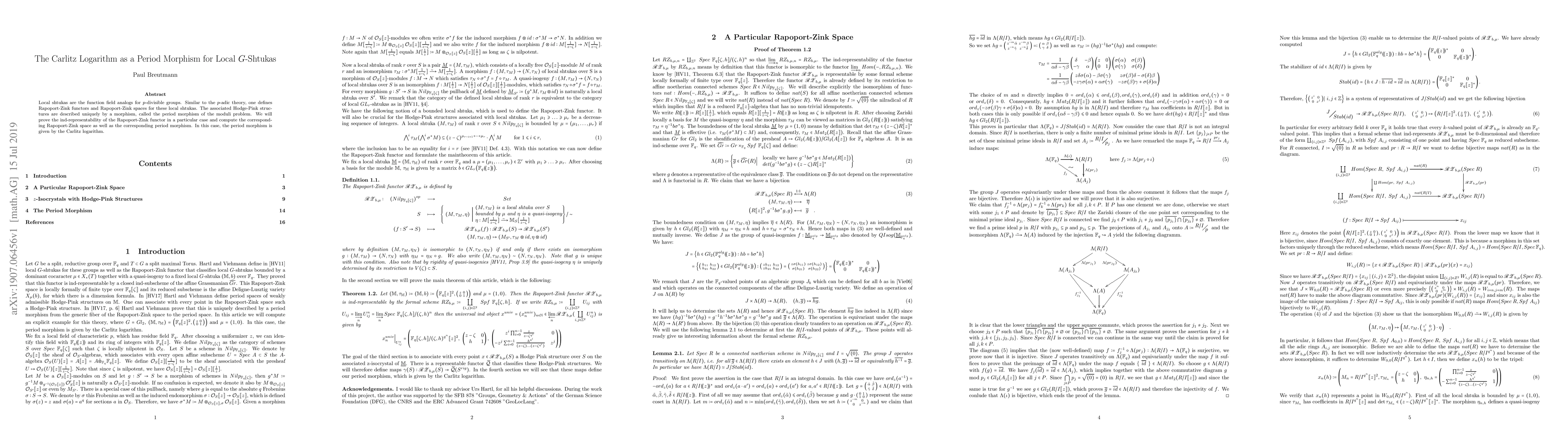 Local shtukas are the function field analogs for $p$-divisible groups. Similar to the $p$-adic theory, one defines Rapoport-Zink functors and Rapoport-Zink spaces for these local shtukas. The associated Hodge-Pink structures are described uniquely by a morphism, called the period morphism of the moduli problem. We will prove the ind-representability of the Rapoport-Zink functor in a particular case and compute the corresponding Rapoport-Zink space as well as the corresponding period morphism. In this case, the period morphism is given by the Carlitz logarithm.