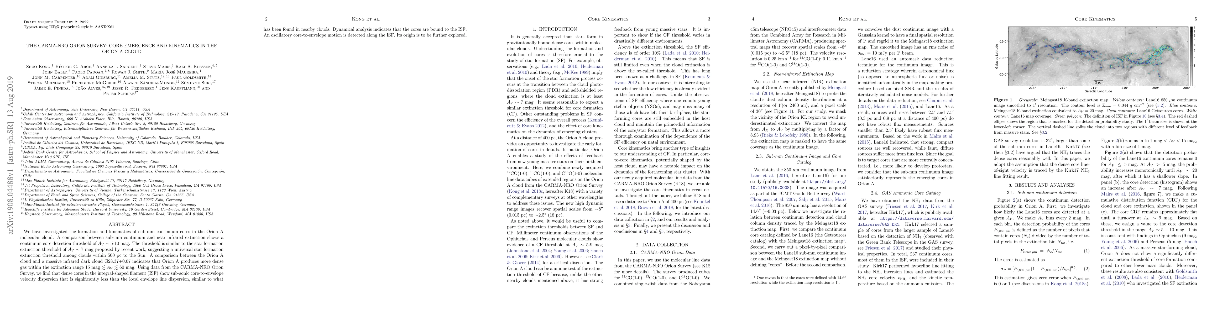 The research utilized sub-mm continuum and near-infrared extinction data from the CARMA-NRO Orion Survey to investigate core formation and kinematics in the Orion A molecular cloud, comparing it with another massive infrared dark cloud, G28.37+0.07.