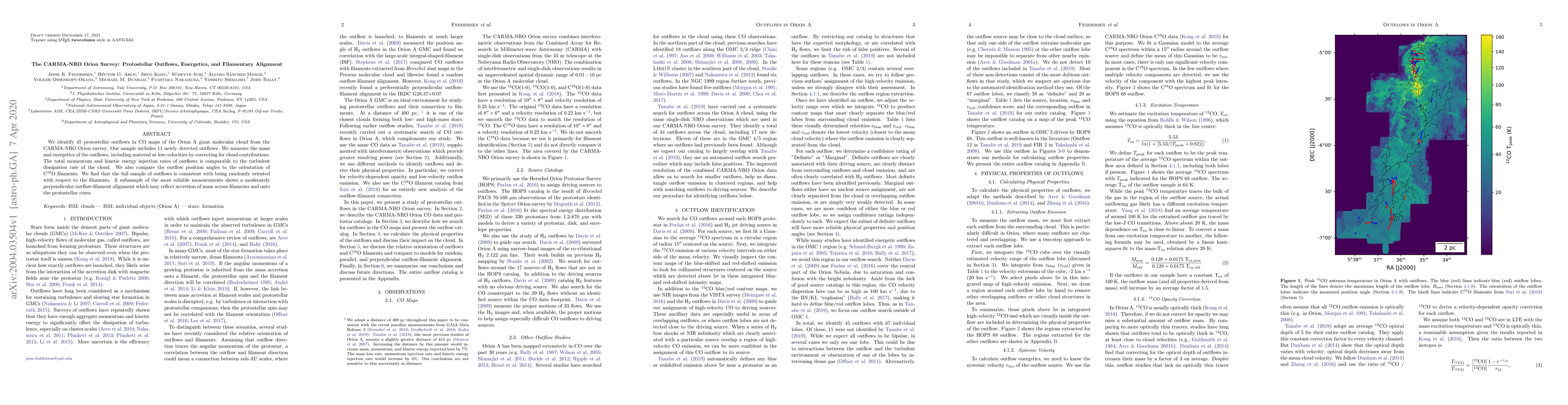 The research utilized the CARMA-NRO Orion Survey to identify 45 protostellar outflows in the Orion A giant molecular cloud, including 11 newly detected ones. The study measured the mass and energetics of these outflows, correcting for cloud contributions, and compared their position angles with the orientation of C18O filaments.