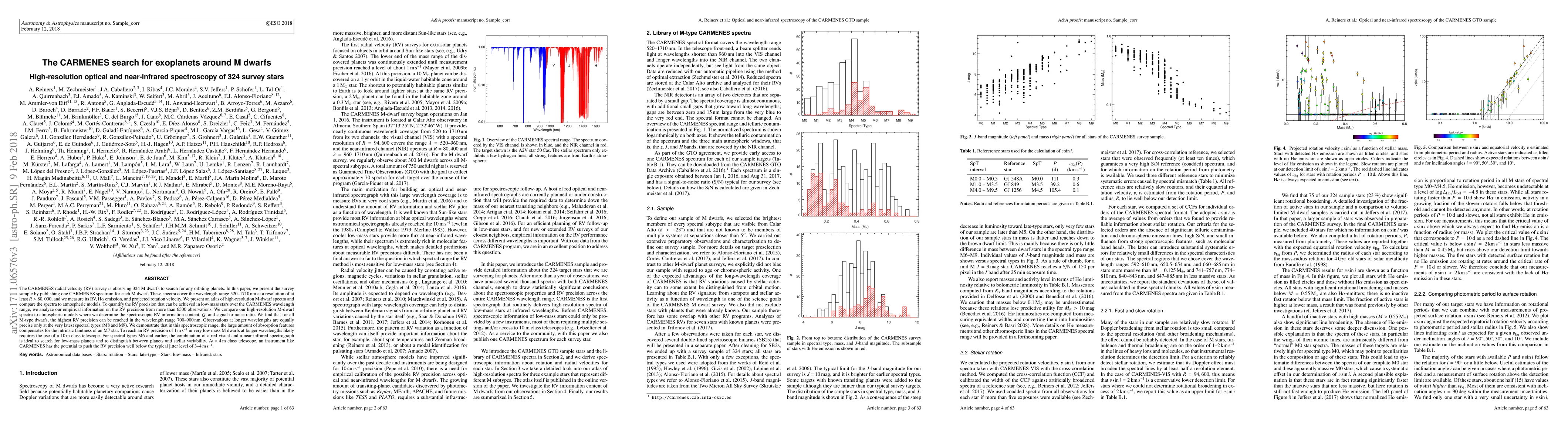 The CARMENES survey provides high-resolution optical and near-infrared spectra for 324 M dwarfs, aiming to detect exoplanets. The study reveals that the highest radial velocity precision for M-type dwarfs is achievable in the 700-900nm wavelength range, with longer wavelengths requiring larger telescopes for similar precision.