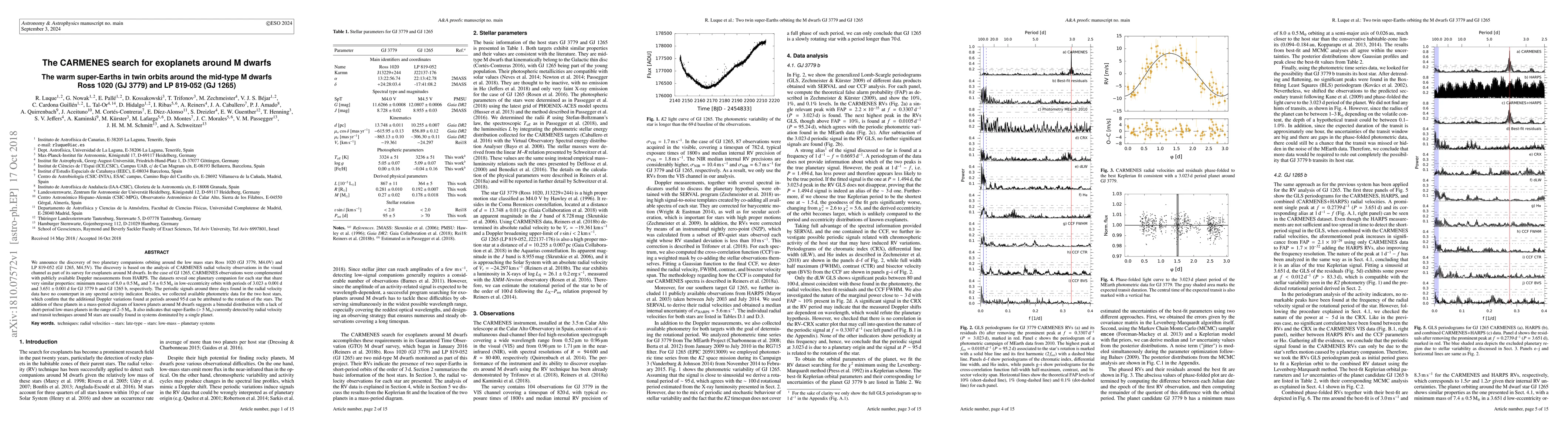 The paper presents a detailed analysis of RV data from CARMENES and HARPS, demonstrating a robust method for distinguishing planetary signals from stellar activity in M dwarf systems.