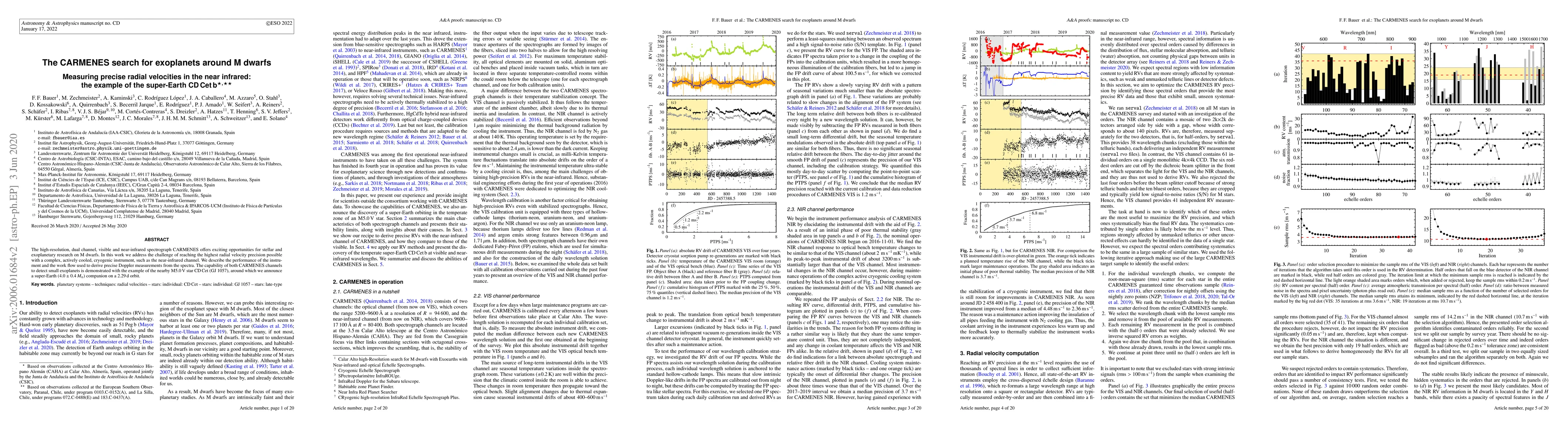 The CARMENES spectrograph successfully demonstrates high-precision radial velocity measurements in the near-infrared, showcasing its capability to detect small exoplanets. A super-Earth companion, CD Cet b, with a mass of $4.0\pm0.4\,M_\oplus$, was discovered orbiting the nearby M5.0 V star CD Cet.