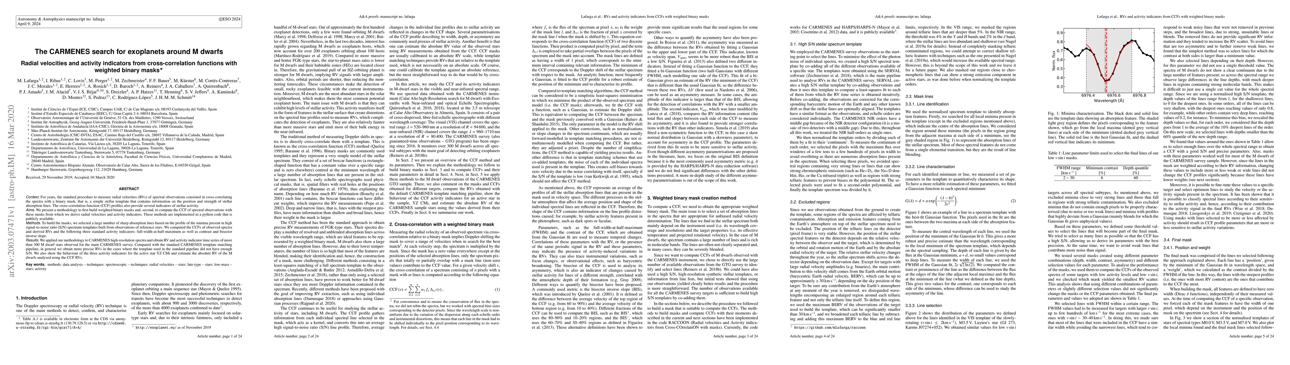 The research presents a methodology for building weighted binary masks and computing cross-correlation functions (CCFs) with these masks to derive radial velocities (RVs) and activity indicators from high-resolution spectral observations. This methodology is implemented in a publicly available Python code.