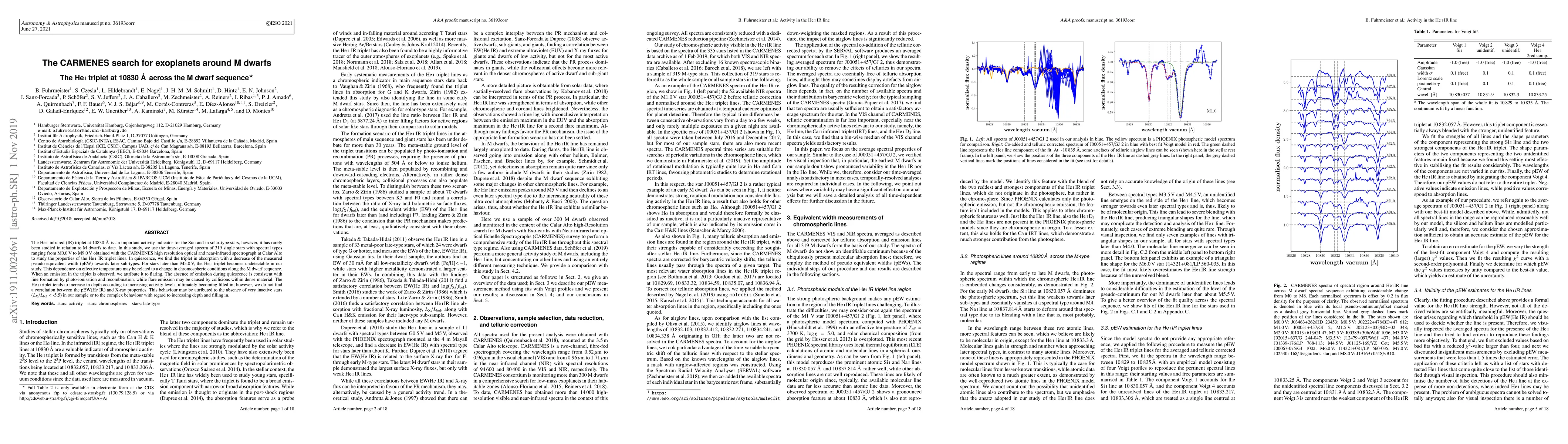 Researchers studied the He I infrared triplet in 319 M dwarf stars, finding it decreases in absorption with cooler temperatures and becomes undetectable at later sub-types, with flaring causing emission in hotter stars.