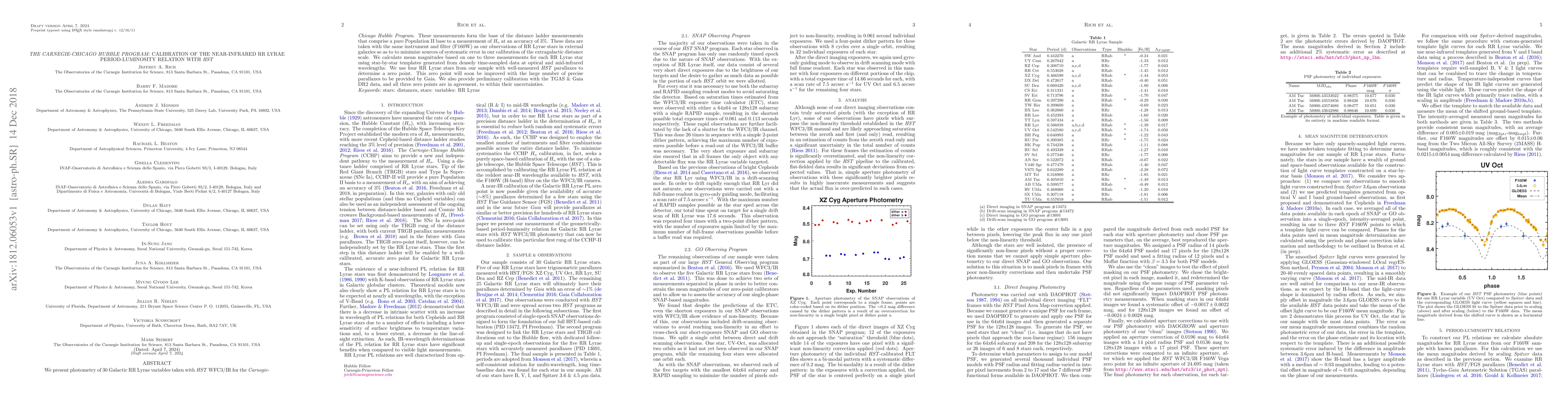 The Carnegie-Chicago Hubble Program calibrates the near-infrared RR Lyrae period-luminosity relation using HST WFC3/IR data, providing a pure Population II baseline for extragalactic distance measurements with an accuracy of 3%. The study uses star-by-star templates and HST parallaxes to determine a zero point, which aligns with Gaia DR2 data.