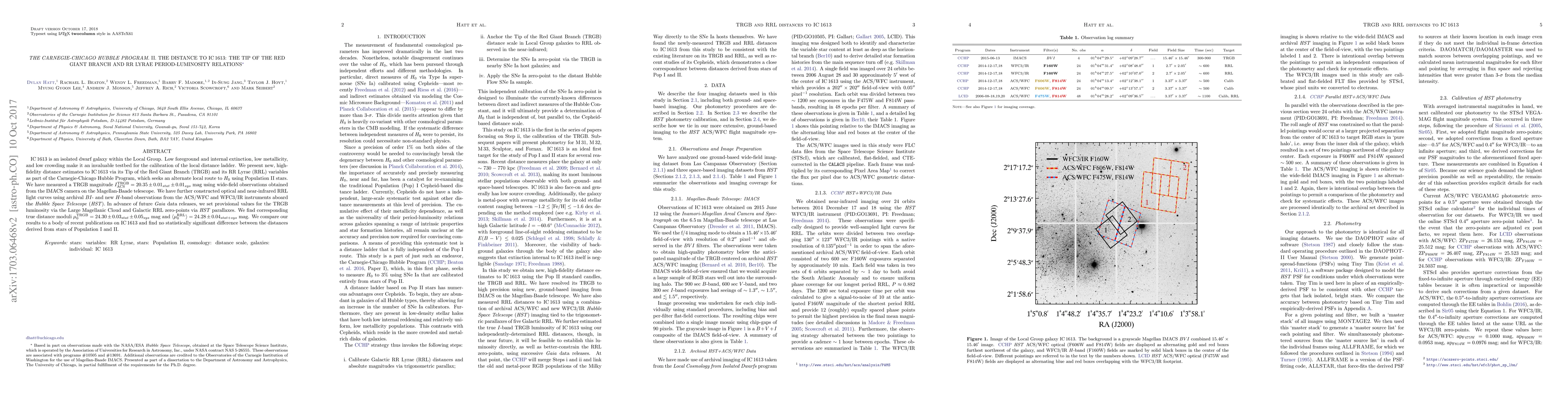 The Carnegie-Chicago Hubble Program provides new distance estimates for the dwarf galaxy IC 1613 using the Tip of the Red Giant Branch (TRGB) and RR Lyrae (RRL) variables, yielding a distance modulus of 24.30±0.03 and 24.28±0.04, respectively, with no significant differences found between Population I and II stars.