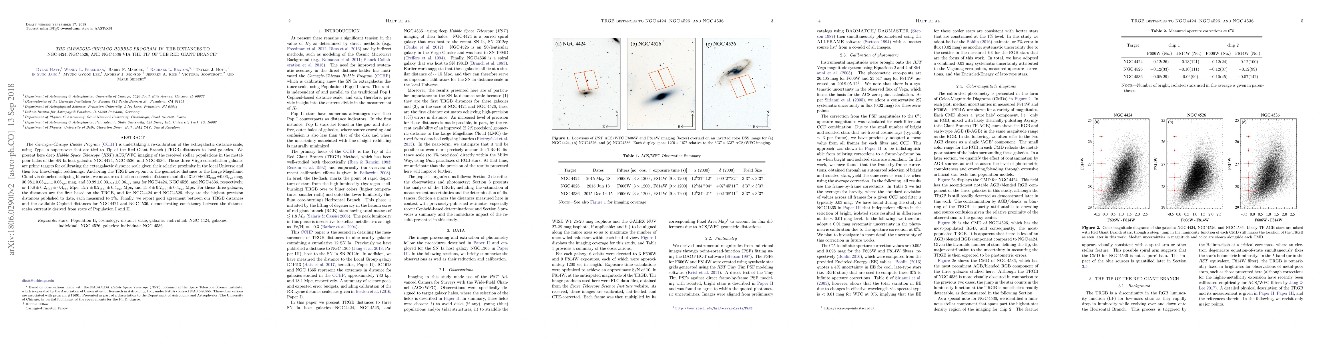 The Carnegie-Chicago Hubble Program measures distances to Virgo galaxies NGC 4424, NGC 4526, and NGC 4536 using the Tip of the Red Giant Branch method, achieving high precision and confirming consistency with Cepheid distances.