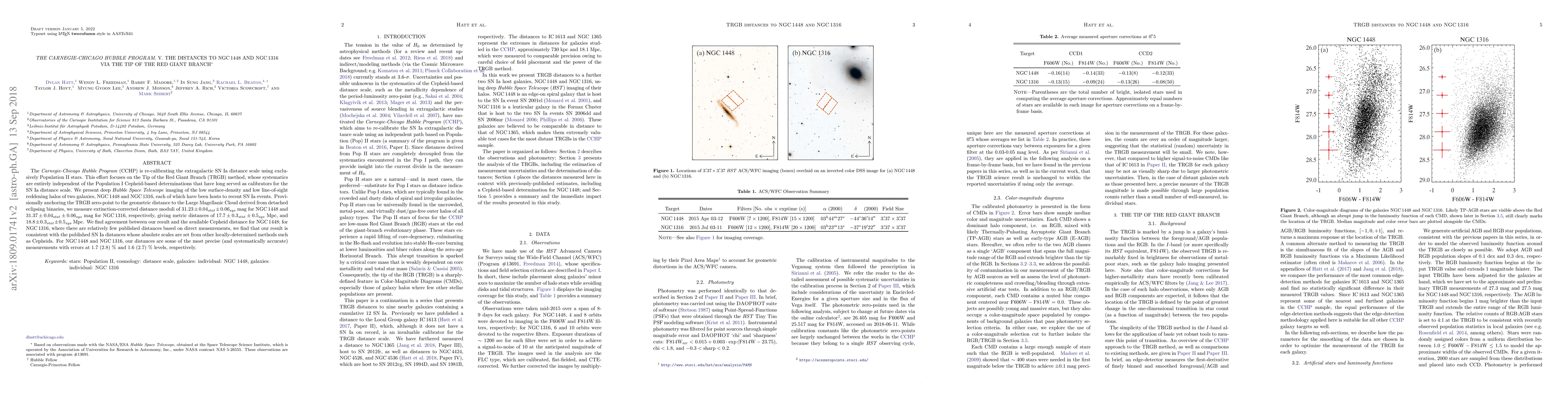 The Carnegie-Chicago Hubble Program recalibrates the extragalactic Type Ia supernova distance scale using the Tip of the Red Giant Branch method. For NGC 1448 and NGC 1316, the program measures precise distances of 17.7 ± 0.3 Mpc and 18.8 ± 0.3 Mpc, respectively, showing agreement with existing Cepheid-based measurements.