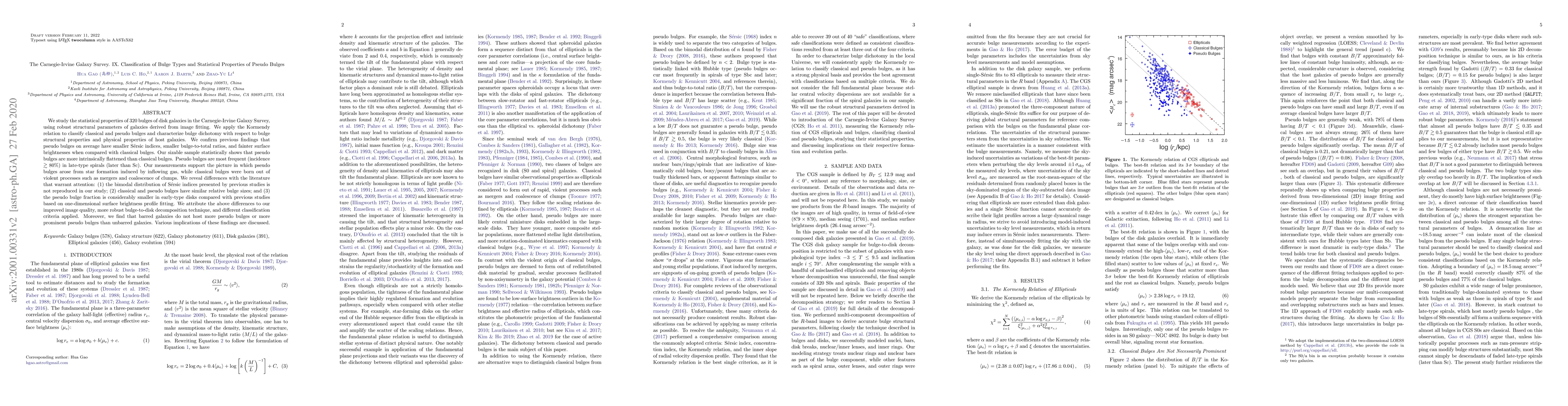 This study classifies 320 galaxy bulges from the Carnegie-Irvine Galaxy Survey into classical and pseudo bulges using structural parameters and the Kormendy relation, revealing that pseudo bulges are typically flatter, smaller, and less luminous than classical bulges. The research highlights differences from previous studies, attributing discrepancies to improved image quality and classification techniques.