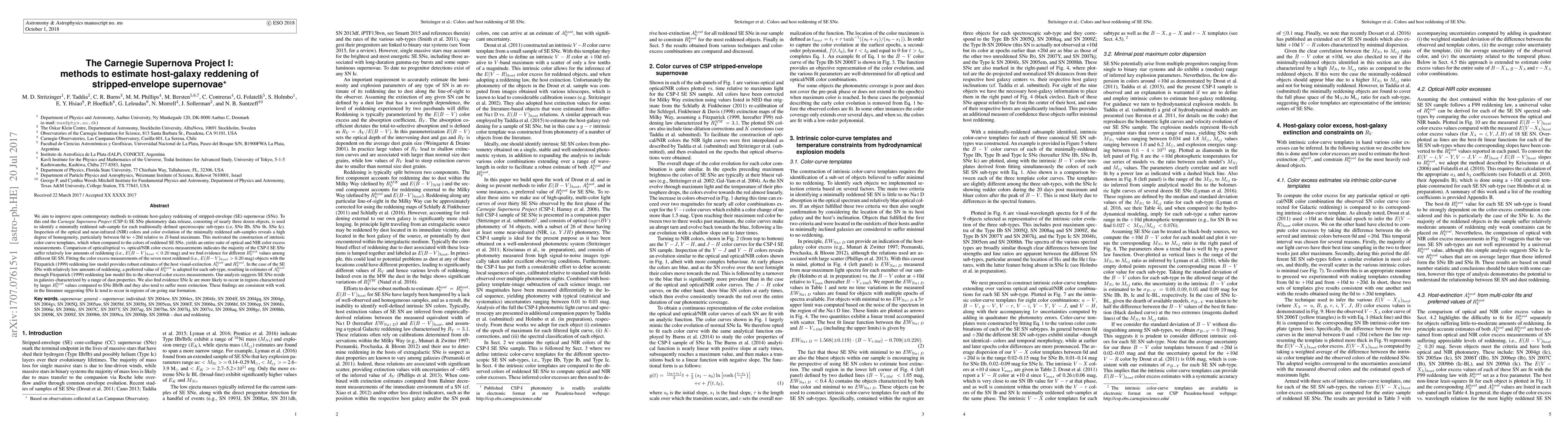 The Carnegie Supernova Project I develops improved methods to estimate host-galaxy reddening of stripped-envelope supernovae (SE SNe) using intrinsic color-curve templates derived from minimally reddened sub-samples. The study finds evidence for varying dust properties and extinction levels across different SE SN types, with SNe Ic showing higher R_(V)^(host) values and more extinction compared to SNe IIb/Ib.