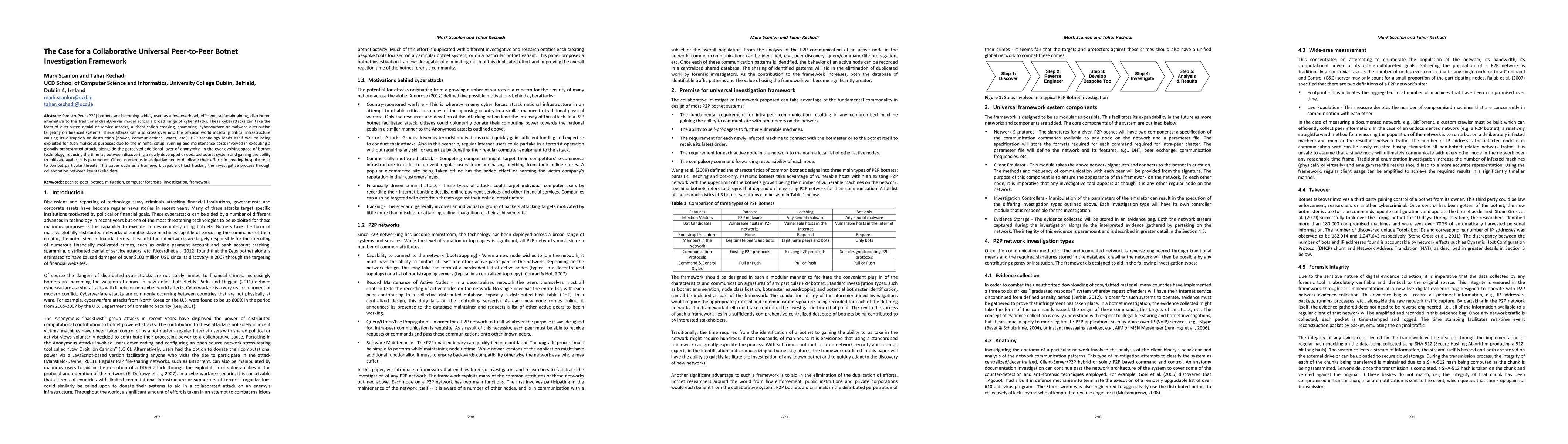 Peer-to-Peer (P2P) botnets are becoming widely used as a low-overhead, efficient, self-maintaining, distributed alternative to the traditional client/server model across a broad range of cyberattacks. These cyberattacks can take the form of distributed denial of service attacks, authentication cracking, spamming, cyberwarfare or malware distribution targeting on financial systems. These attacks can also cross over into the physical world attacking critical infrastructure causing its disruption or destruction (power, communications, water, etc.). P2P technology lends itself well to being exploited for such malicious purposes due to the minimal setup, running and maintenance costs involved in executing a globally orchestrated attack, alongside the perceived additional layer of anonymity. In the ever-evolving space of botnet technology, reducing the time lag between discovering a newly developed or updated botnet system and gaining the ability to mitigate against it is paramount. Often, numerous investigative bodies duplicate their efforts in creating bespoke tools to combat particular threats. This paper outlines a framework capable of fast tracking the investigative process through collaboration between key stakeholders.