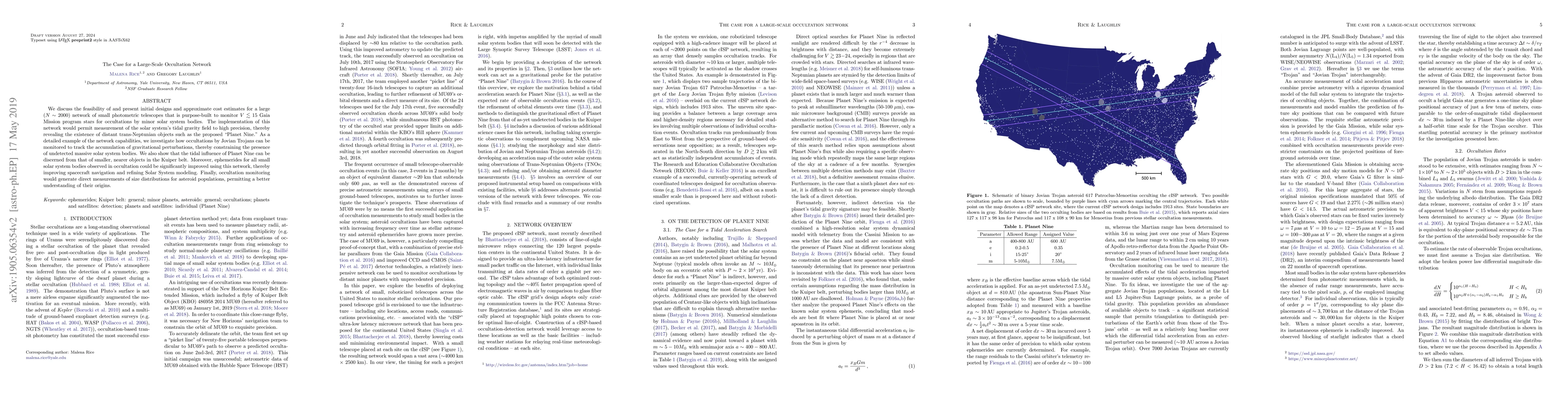 We discuss the feasibility of and present initial designs and approximate cost estimates for a large ($N\sim2000$) network of small photometric telescopes that is purpose-built to monitor $V \lesssim 15$ Gaia Mission program stars for occultations by minor solar system bodies. The implementation of this network would permit measurement of the solar system's tidal gravity field to high precision, thereby revealing the existence of distant trans-Neptunian objects such as the proposed "Planet Nine." As a detailed example of the network capabilities, we investigate how occultations by Jovian Trojans can be monitored to track the accumulation of gravitational perturbations, thereby constraining the presence of undetected massive solar system bodies. We also show that the tidal influence of Planet Nine can be discerned from that of smaller, nearer objects in the Kuiper belt. Moreover, ephemerides for all small solar system bodies observed in occultation could be significantly improved using this network, thereby improving spacecraft navigation and refining Solar System modeling. Finally, occultation monitoring would generate direct measurements of size distributions for asteroid populations, permitting a better understanding of their origins.