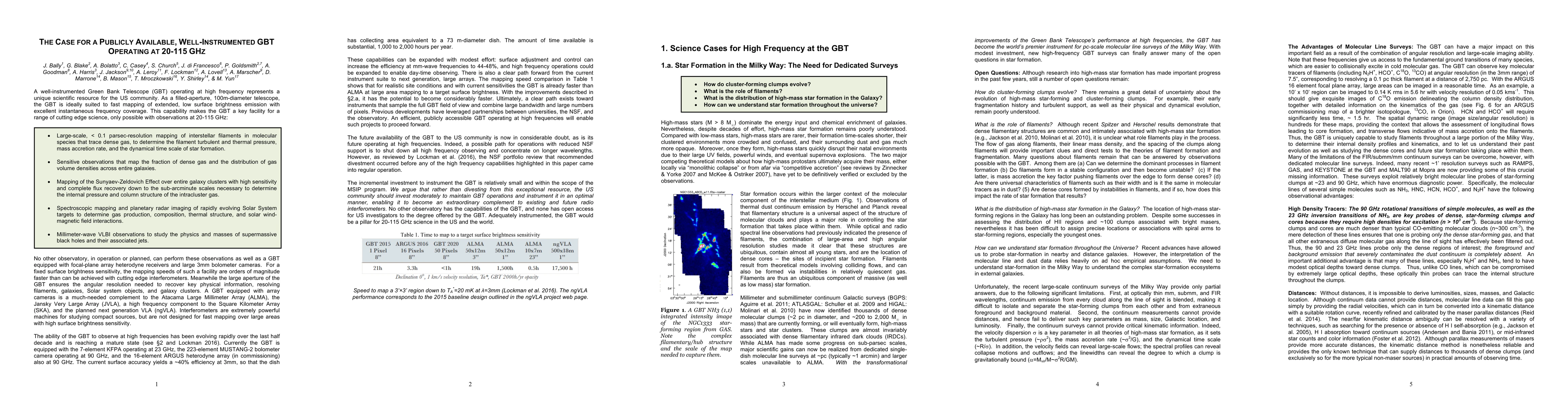The paper advocates for maintaining and optimally instrumenting the Green Bank Telescope (GBT) for high-frequency, 20-115 GHz observations. This investment is crucial for preserving unique capabilities for fast mapping of low surface brightness emission, complementing interferometers and strengthening US and global 20-115 GHz science.