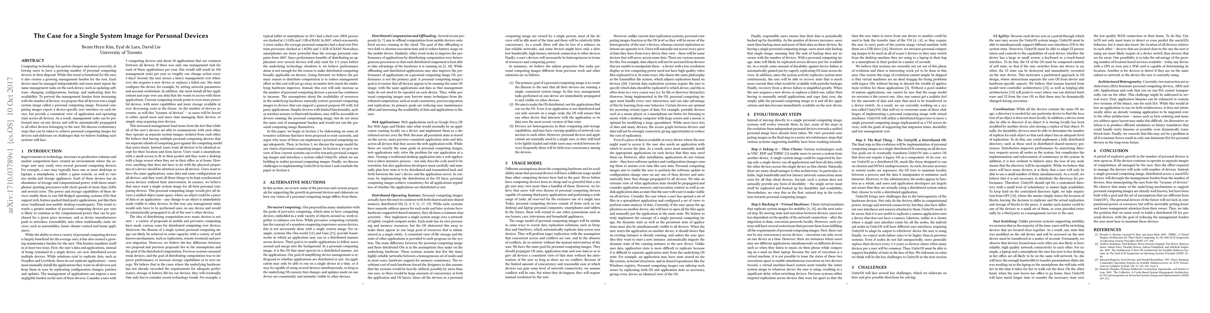 The paper proposes 'personal computing images' to unify management of multiple personal devices, allowing users to perform tasks on any device and have them propagate across all devices. It discusses evolutionary steps and anticipates challenges in building such systems.
