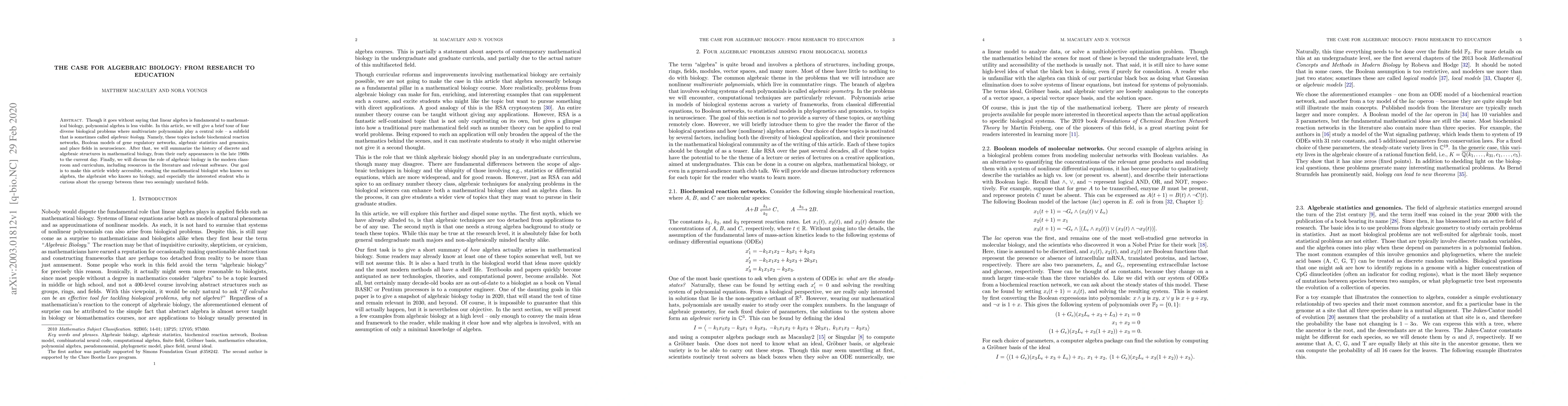 This paper explores the significance of polynomial algebra in biological systems, highlighting its application in areas like biochemical networks and gene regulatory models. It also traces the historical development of algebraic structures in mathematical biology and discusses their integration into modern educational curricula.