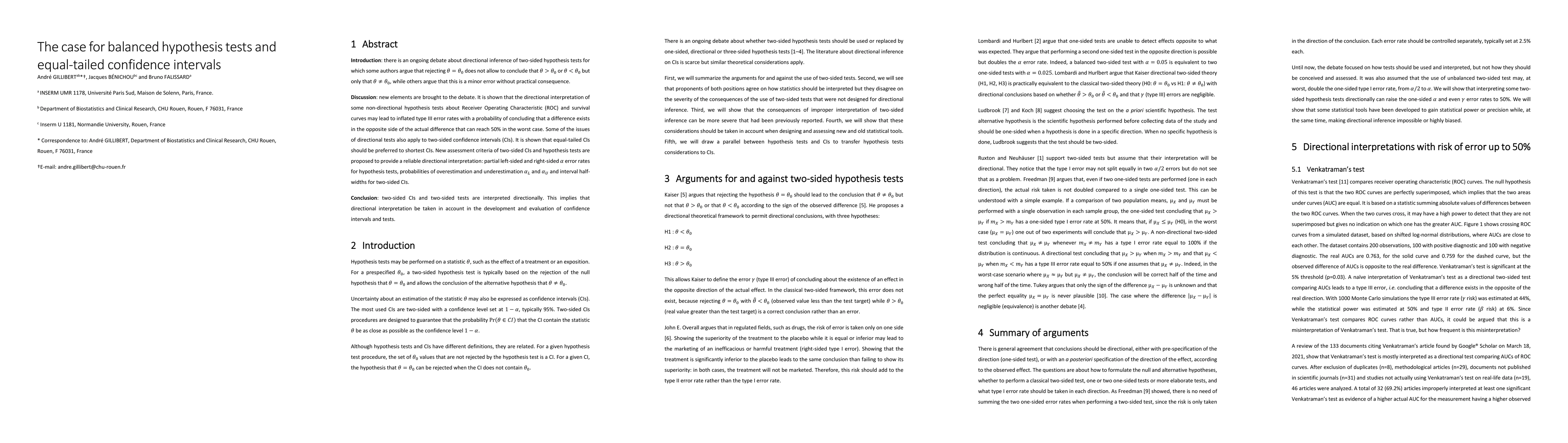 This paper argues for balanced hypothesis tests and equal-tailed confidence intervals to avoid inflated type III errors and misinterpretations in directional inference. It proposes new assessment criteria to ensure reliable directional interpretation in statistical analyses.