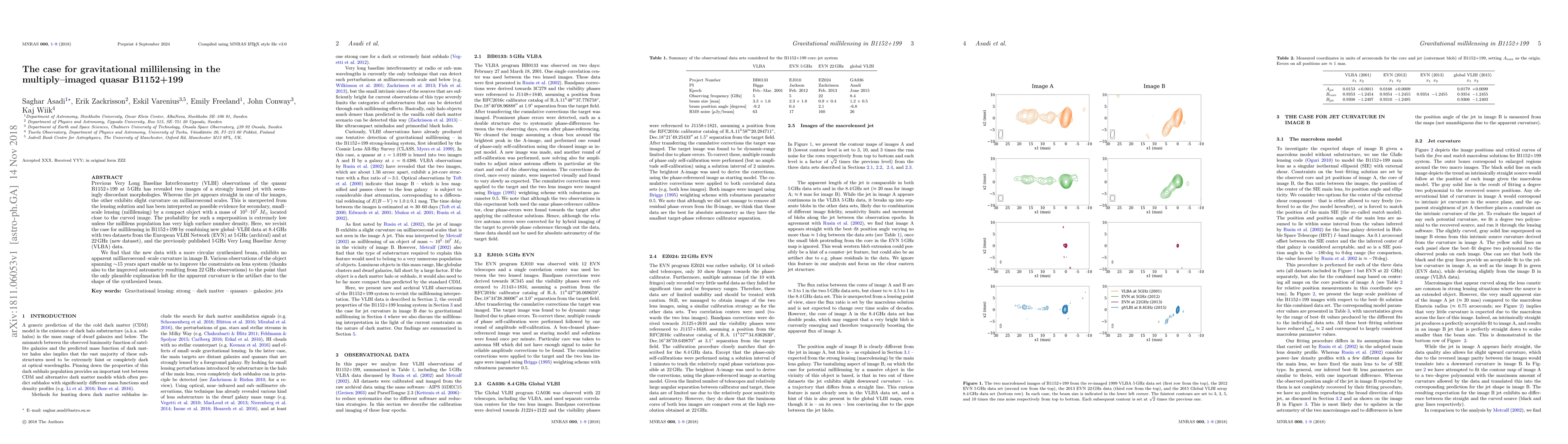 The paper revisits the case for gravitational millilensing in the quasar B1152+199, finding that new global-VLBI data at 8.4GHz and improved astrometry suggest the previously observed jet curvature is likely an artifact of the synthesized beam rather than evidence of millilensing. This conclusion is supported by observations spanning nearly 15 years.