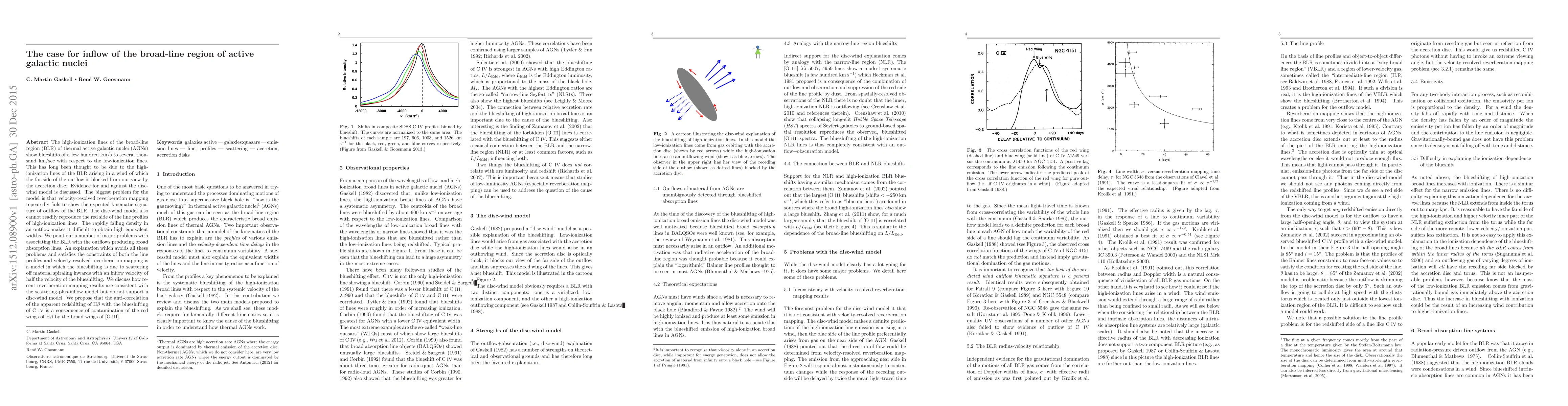 This paper argues against the disc-wind model for the blueshifts in high-ionization lines in active galactic nuclei's broad-line region, proposing instead that the blueshifting is due to scattering off material spiraling inwards. It highlights the inconsistencies of the disc-wind model with observational data and suggests that the observed anti-correlation between redshifts and blueshifts may be due to contamination effects.