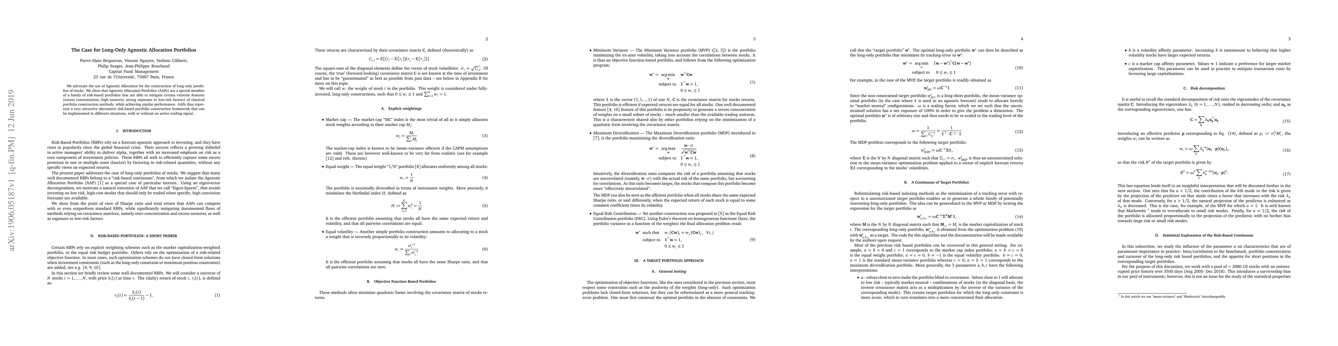 Researchers propose Agnostic Allocation Portfolios as a risk-based alternative to classical portfolio construction methods, achieving similar performance with reduced extreme features such as concentration and high turnover.