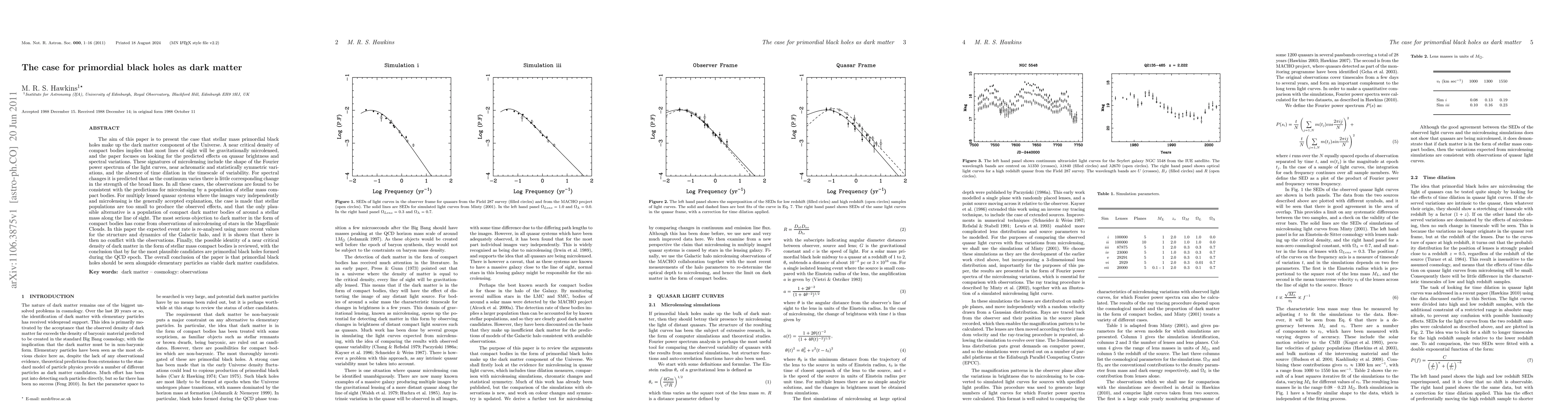This paper argues that primordial black holes, formed during the early Universe, could constitute the dark matter. It explores microlensing effects on quasars, finding consistent observations with predictions for such compact bodies, and re-analyzes microlensing events in the Magellanic Clouds to resolve previous conflicts, ultimately concluding that primordial black holes are a viable dark matter candidate.