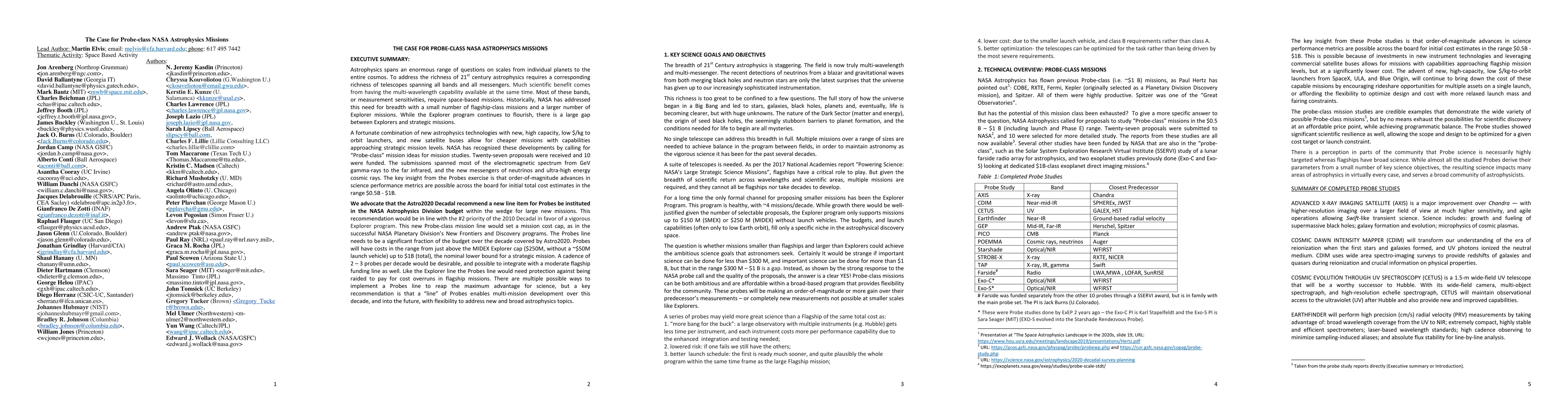 Astrophysics spans an enormous range of questions on scales from individual planets to the entire cosmos. To address the richness of 21st century astrophysics requires a corresponding richness of telescopes spanning all bands and all messengers. Much scientific benefit comes from having the multi-wavelength capability available at the same time. Most of these bands,or measurement sensitivities, require space-based missions. Historically, NASA has addressed this need for breadth with a small number of flagship-class missions and a larger number of Explorer missions. While the Explorer program continues to flourish, there is a large gap between Explorers and strategic missions. A fortunate combination of new astrophysics technologies with new, high capacity, low dollar-per-kg to orbit launchers, and new satellite buses allow for cheaper missions with capabilities approaching strategic mission levels. NASA has recognized these developments by calling for Probe-class mission ideas for mission studies, spanning most of the electromagnetic spectrum from GeV gamma-rays to the far infrared, and the new messengers of neutrinos and ultra-high energy cosmic rays. The key insight from the Probes exercise is that order-of-magnitude advances in science performance metrics are possible across the board for initial total cost estimates in the range 500M-1B dollars.
